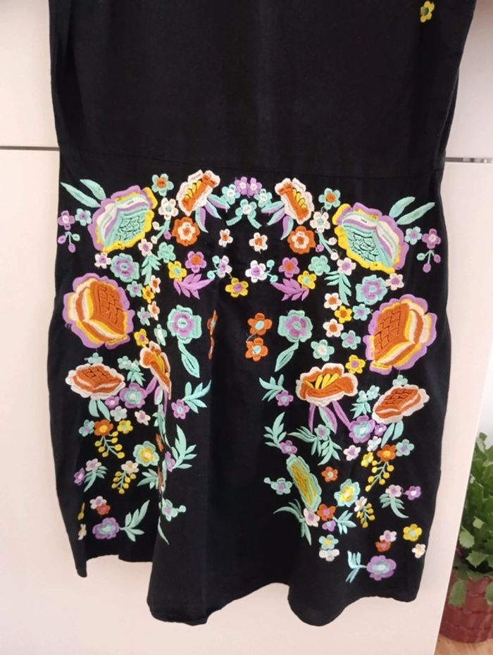 Robe noire brodée fleurs multicolore Asos taille 36 - photo numéro 2