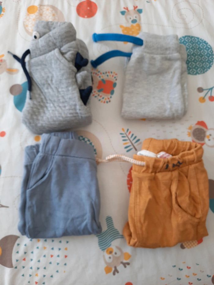 》1 jogging "monstre" de couleur gris de chez orchestra avec cordon au niveau de la taille et écriture "grrrr" au niveau de la jambe 》1 jogging disney de couleur gris avec écriture "Mickey mouse" en bleu au niveau de l'arrière et cordon au niveau de la taille 》1 jogging bleu de chez sergent major avec poches et tête animaux au niveau du genou et écriture "mon petit major" sur l'arrière 》1 jogging moutarde de chez zara avec poches à l'avant et une poche à l'arrière et cordon + ecriture "im king" au niveau de la taille Le tout en très bon état. Taille 3 mois