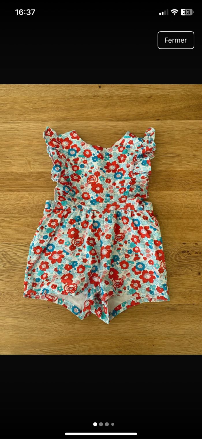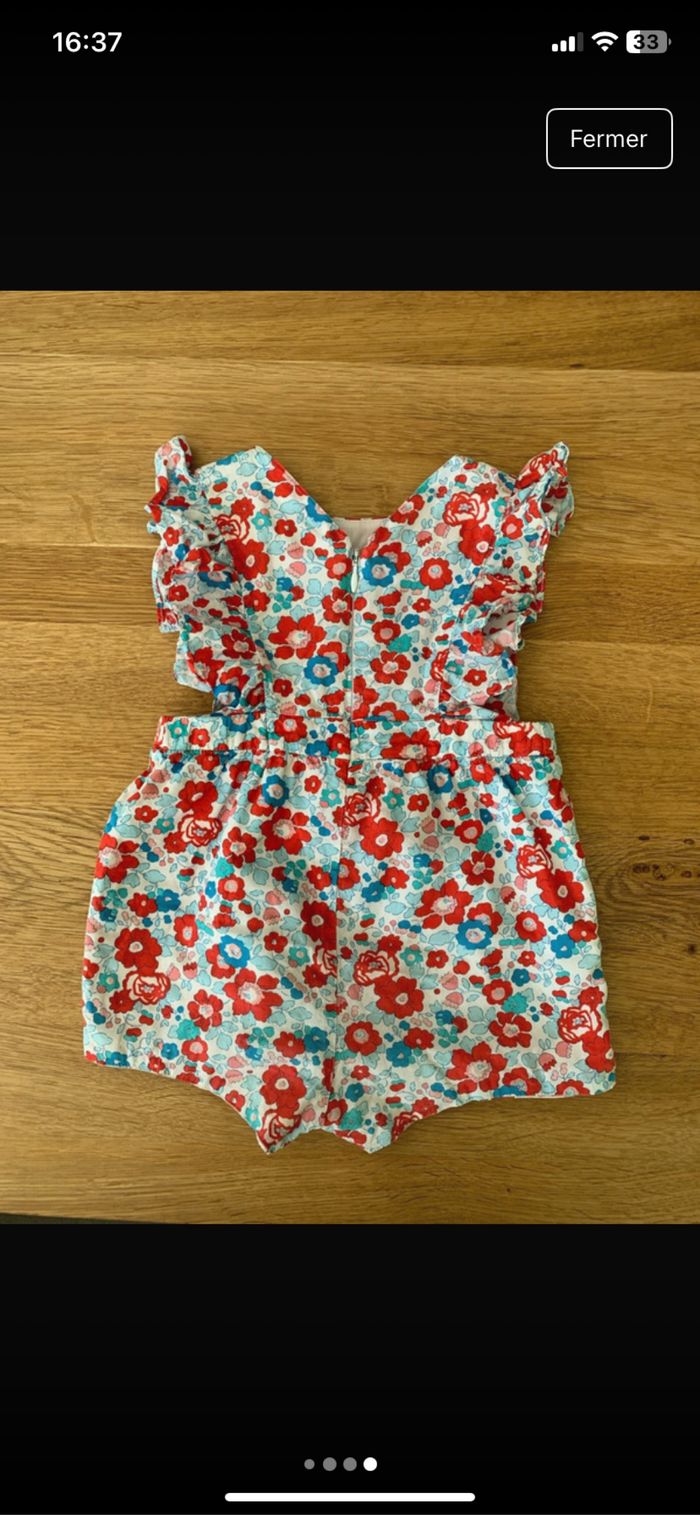 Combishort Jacadi Taille : 18 mois - 81 cm Motif fleuri bleu & rouge Fermeture éclair dans le dos et boutons pressions entre les jambes
