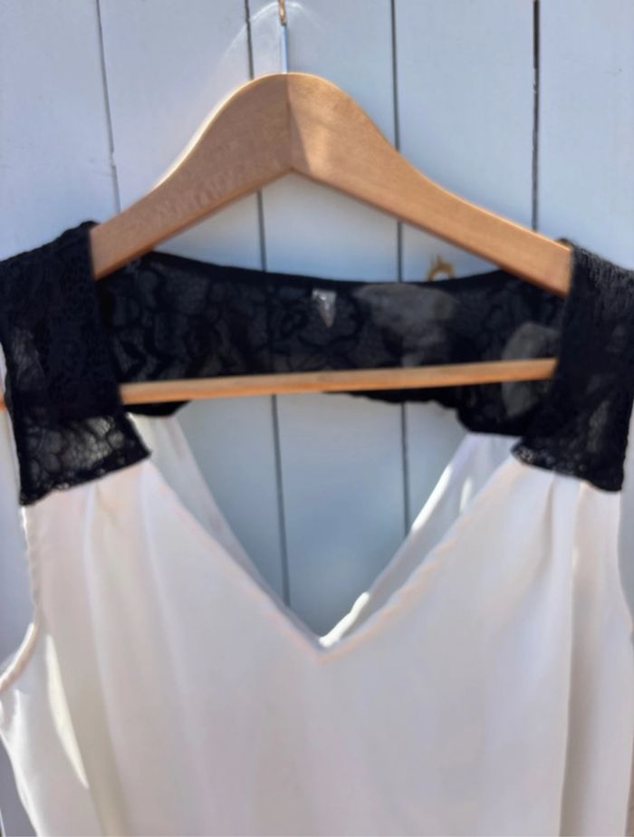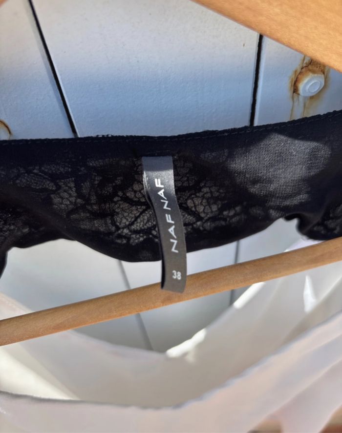 Jolie haut Naf Naf blanc avec col dentelle. Très bon état sans trou ni tache Maison non fumeur Envoi rapide