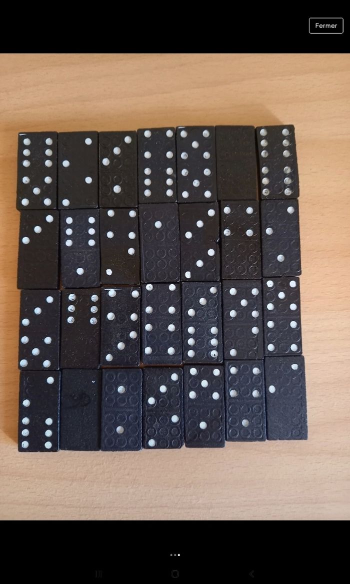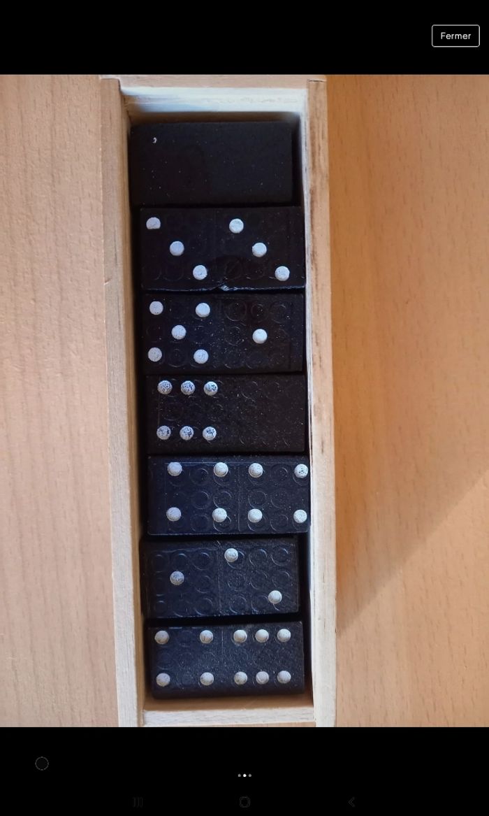Vends un jeu de domino en bois complet et en très bon état 28 pièces et règles du jeu Je vends ce jeu à 5 euros