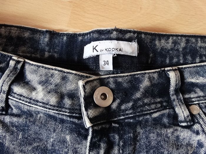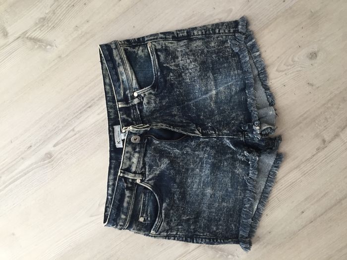 Short en jean, taille 34, jamais porté, délavé et franges en bas