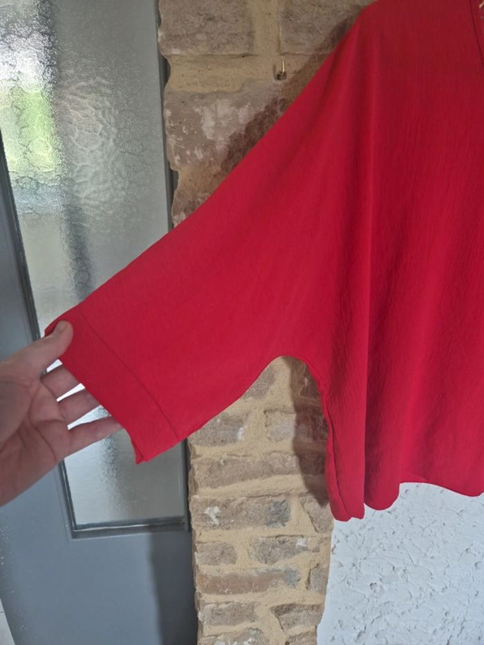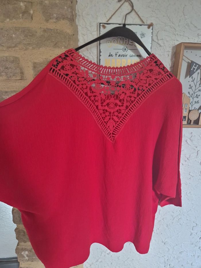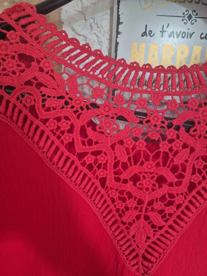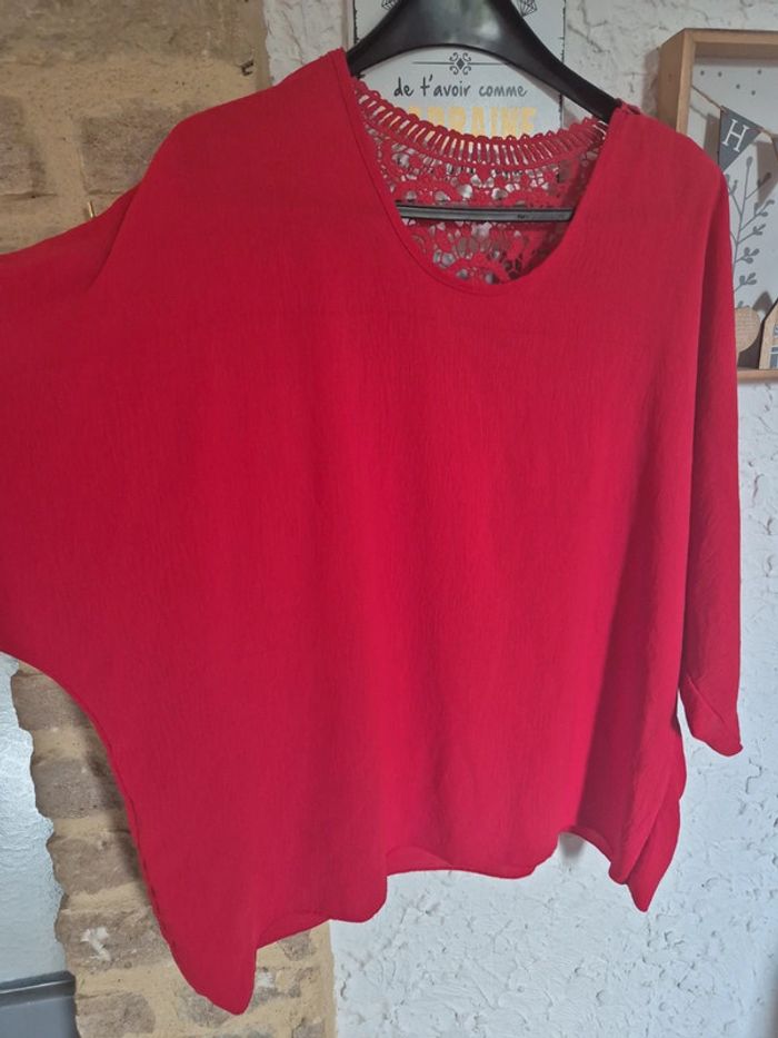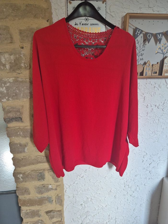 Magnifique blouse rouge flamboyant avec dos brodé rouge taille 48/50