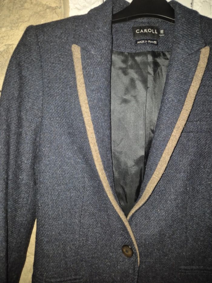 Magnifique veste de blazer bleue marine et marron Caroll taille 38 - photo numéro 2
