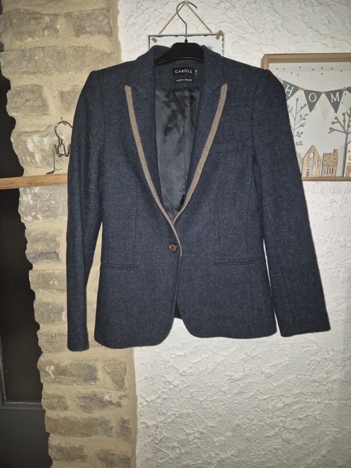 Magnifique veste de blazer bleue marine et marron Caroll taille 38 - photo numéro 1