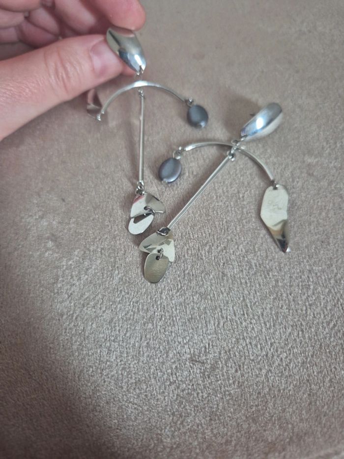 Jolies boucles pendantes argenté acier inoxydable - photo numéro 3