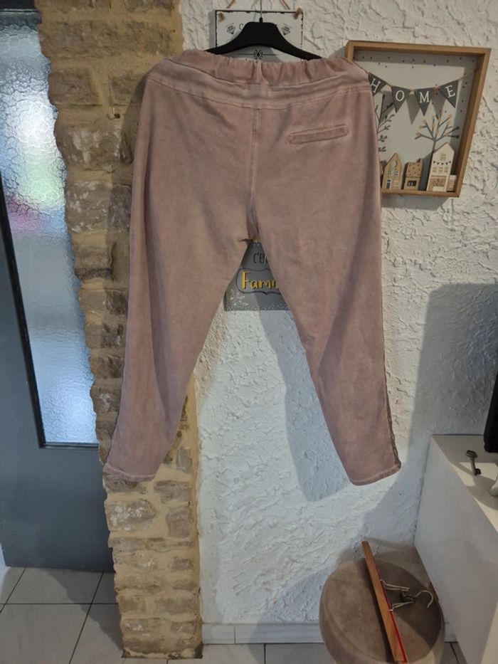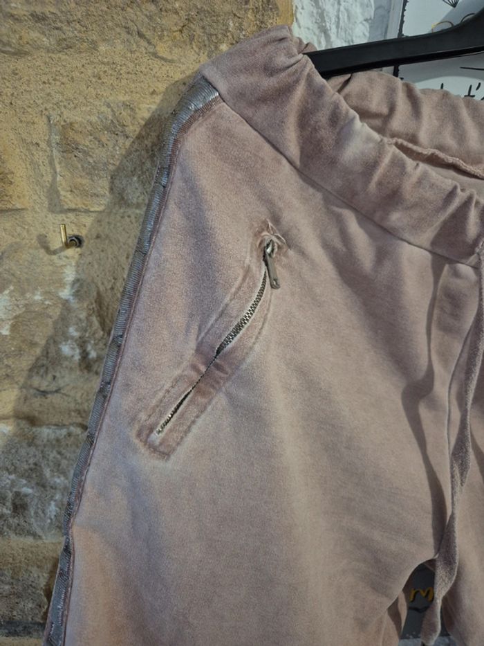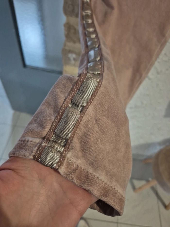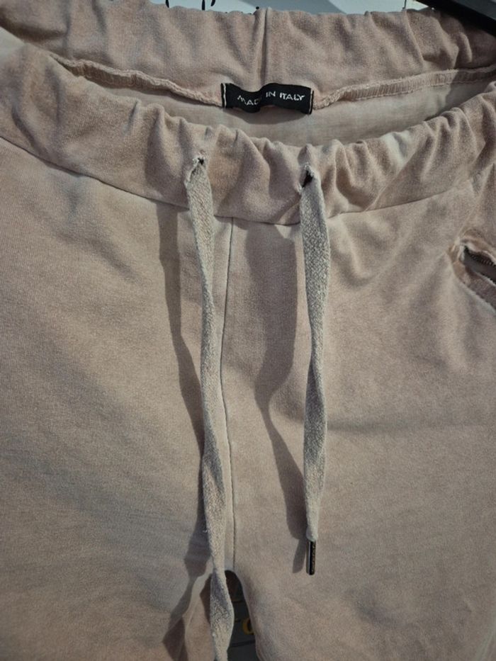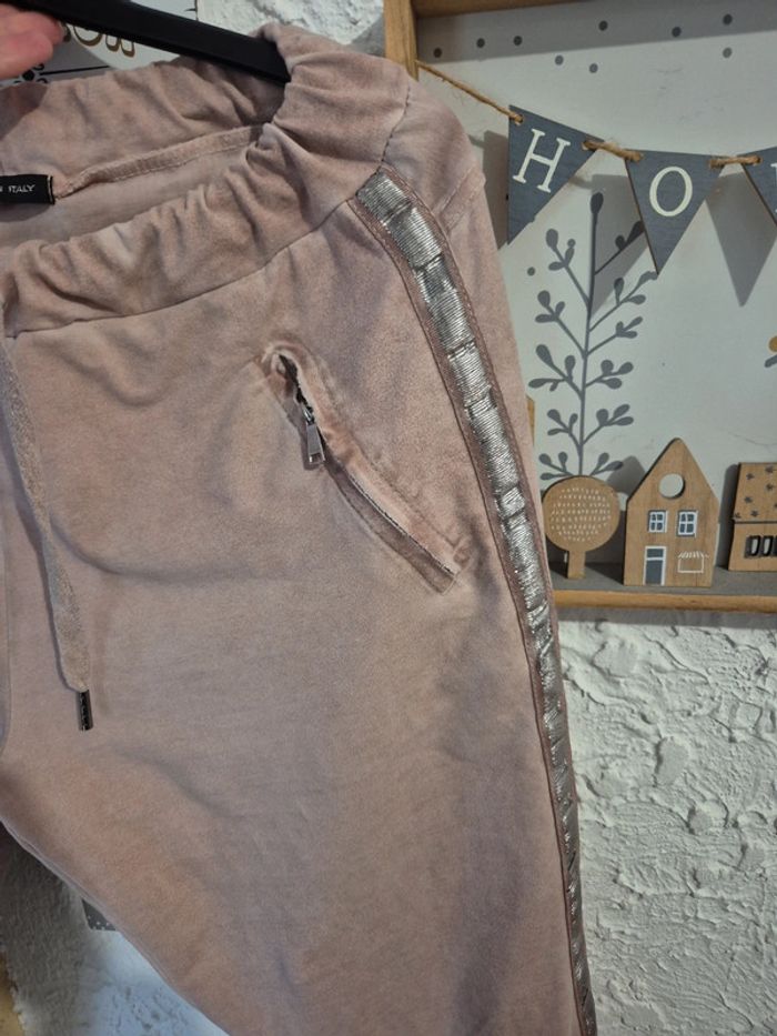 Très joli pantalon magique rose pâle effet velours ras avec liserais Made in italy taille 44/46