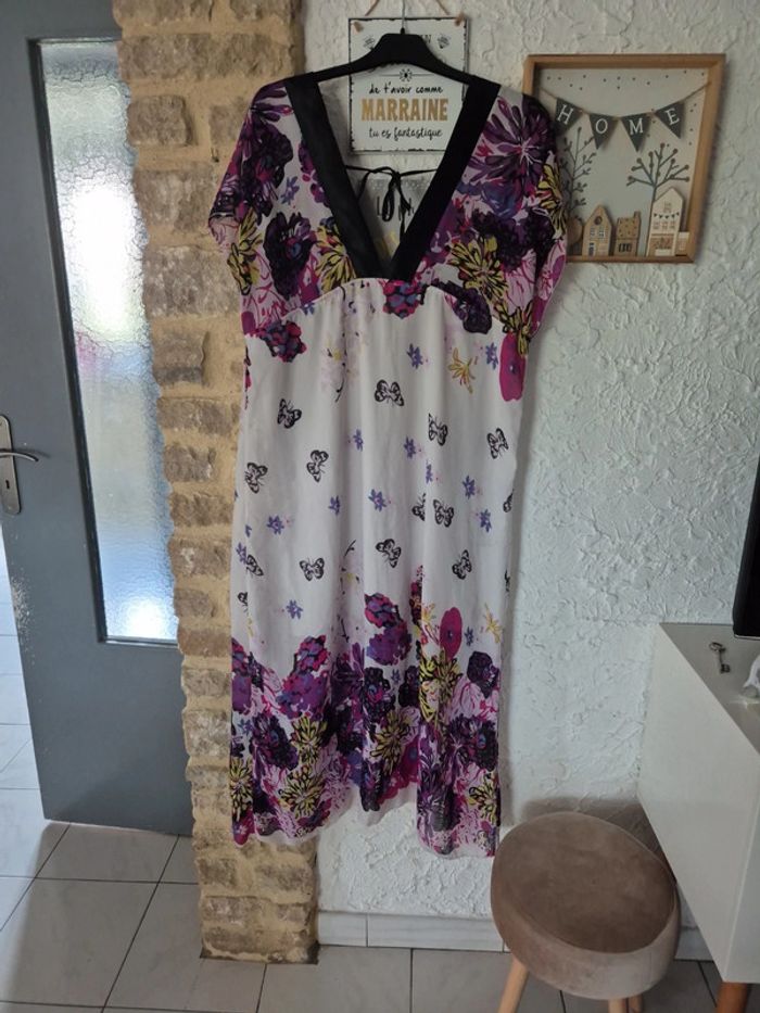Magnifique robe tout en voile, satinée au col taille 44/46 si petite poitrine