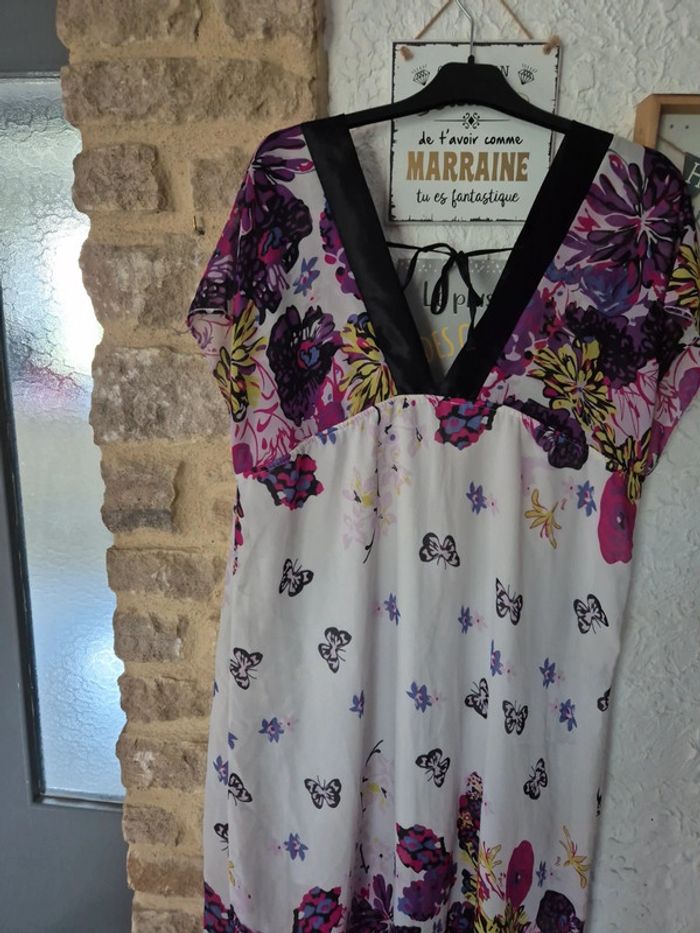 Tout en effer transparence, doublée sur le bas de la robe mais pas le haut. Peut convenir à un 46 si petite poitrine. Envoi rapide et soigné Réductions sur les lots.