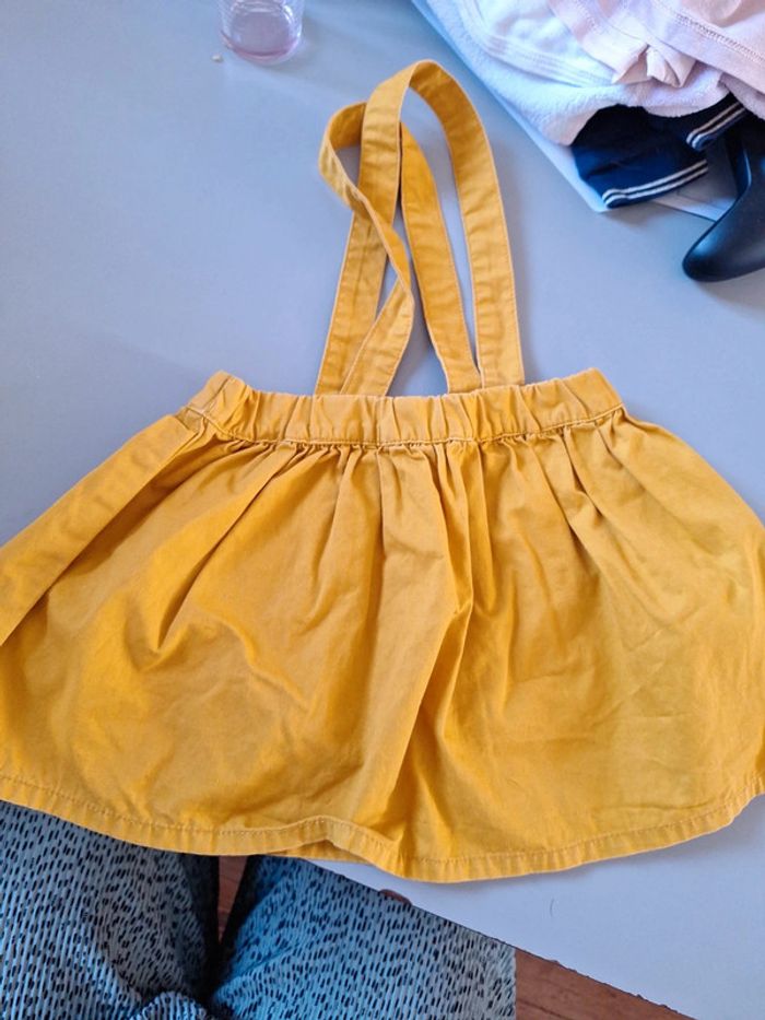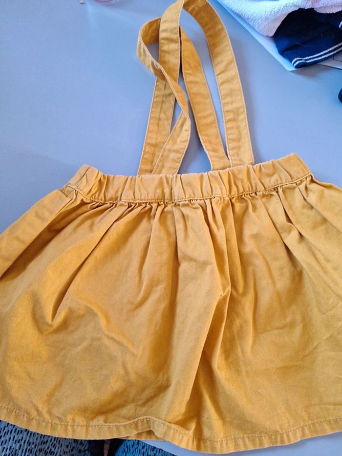 Couleur moutarde jupe bretelles Kiabi #2ans_fille_baby2014_2020