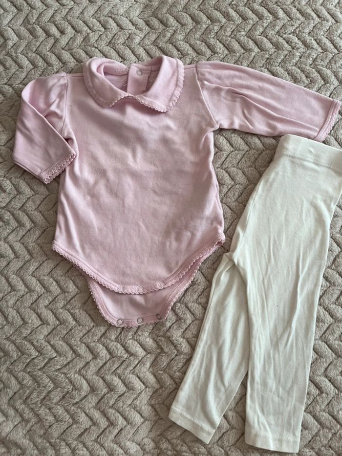 Ensemble body et legging Legging blanc Body rose poudré col Claudine Kiabi Kimbaloo 9 mois