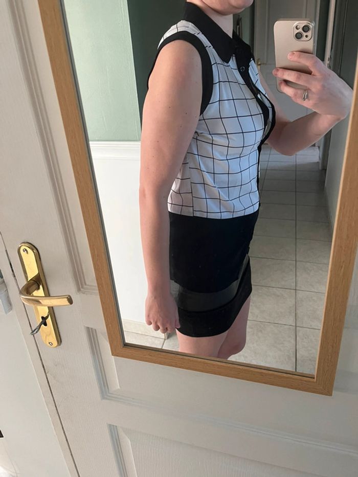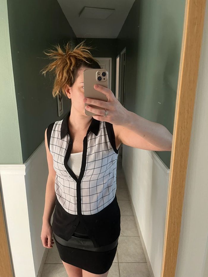 Chemisier carreaux noir et blanc taille l mais équivaut à un s/m