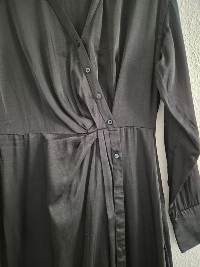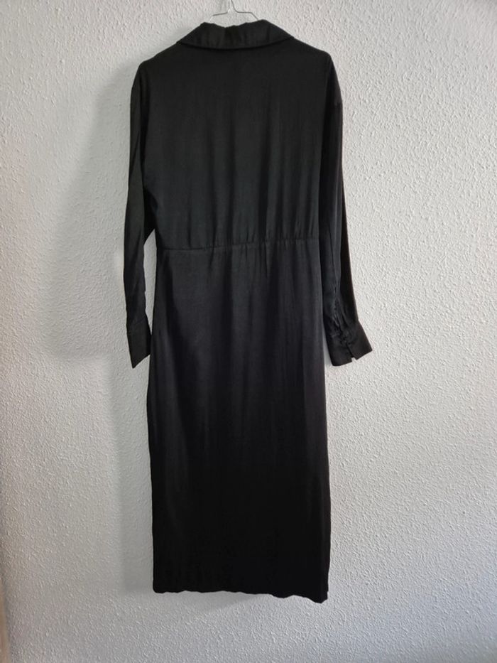 Robe mi-longue noire Col cache cœur Aucun défaut d'usure. En très bon état. Longueur totale: 124 cm Longueur manche : 55 cm Tour de tailel: 70 cm Largeur épaule : 46cm N'hésitez pas si vous avez la moindre question 🌷