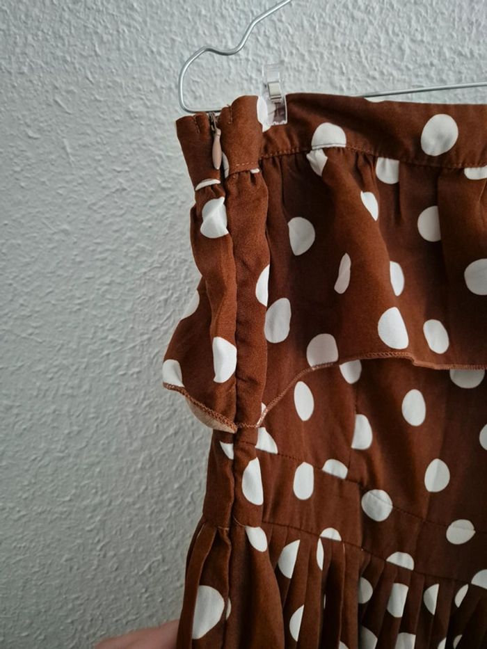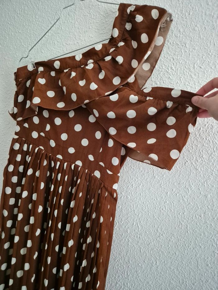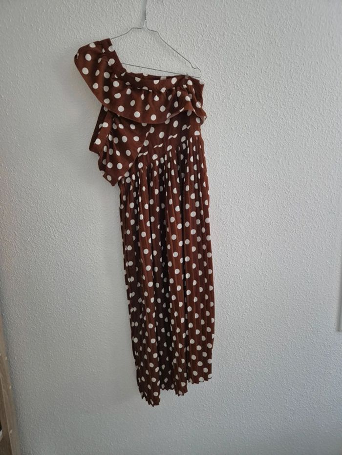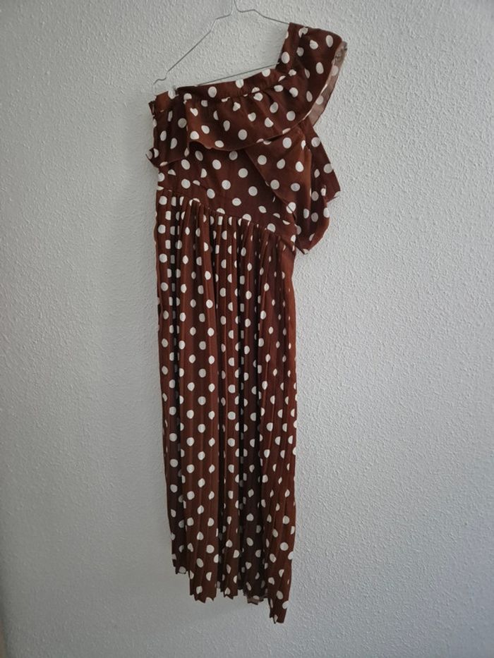 Robe avec bretelles asymétriques Motif polka Fermeture sur le côté Neuve sans étiquette, 0 défaut. Longueur totale : 127 cm Tour de taille : 64 cm N'hésitez pas so vous avez la moindre question. ⚠️ Réductions en lot jusqu'à -50% sur mon dressing ⚠️