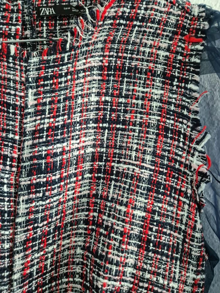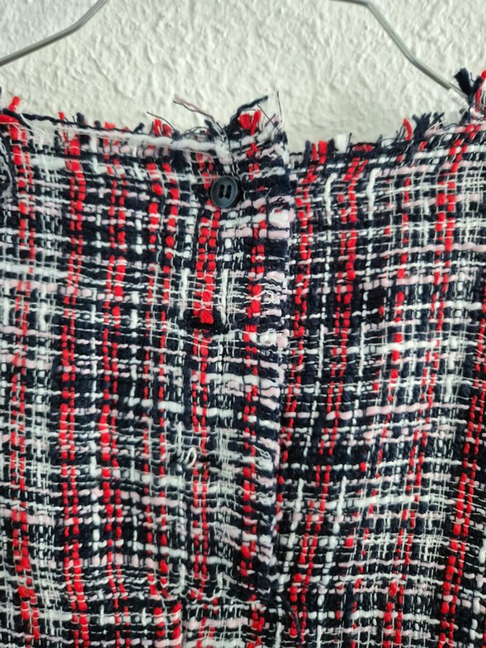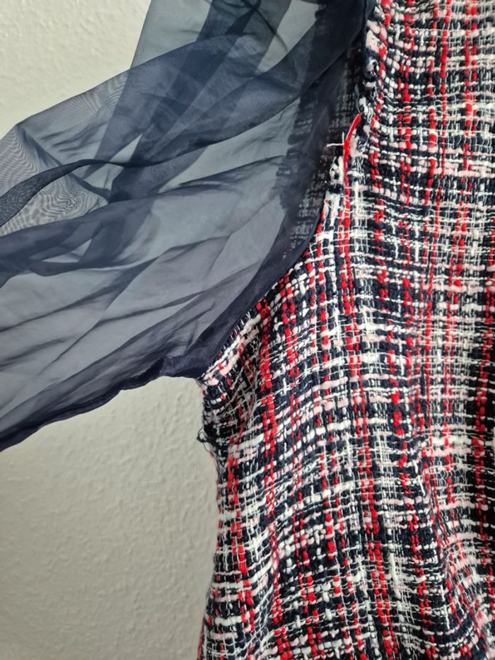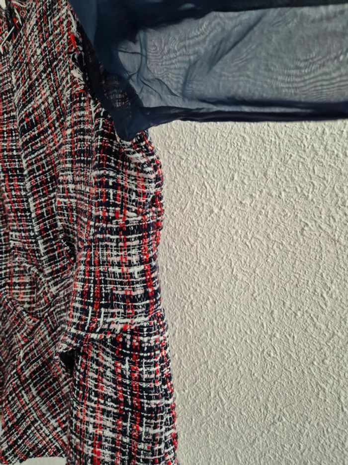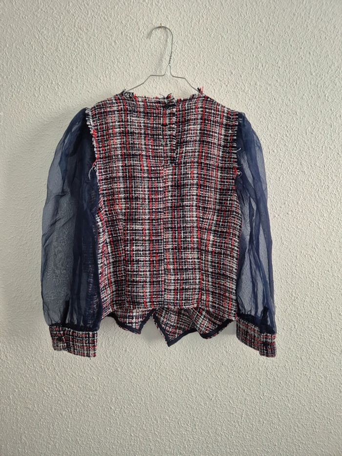 Top en tweed et organza Fermeture à l'arrière par bouton Défaut : fil ressorti etc mais reste en bon état Longueur totale : 52 cm Largeur épaules: 40 cm Longueur manche : 54 cm N'hésitez pas so vous avez la moindre question. ⚠️ Réductions en lot jusqu'à -50% sur mon dressing ⚠️