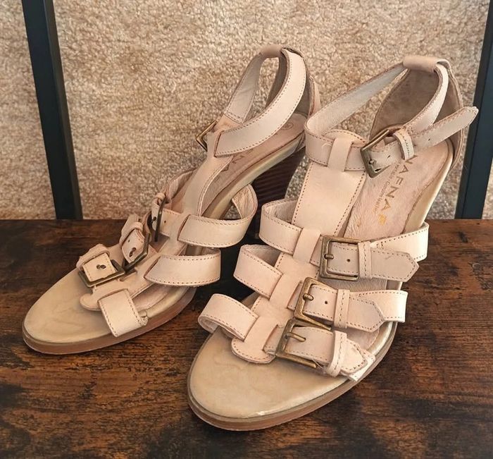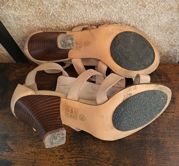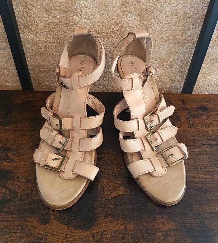 Sandales en cuir véritable 36 Hauteur Talon : 8 cm Bon état Beige / Crème Marque : Naf Naf Prix : 12€ Disponible immédiatement Envoie rapide et soigné Quelque petites imperfections car ont était porter ! Remise activé sur l'achat d'un lots ❤️