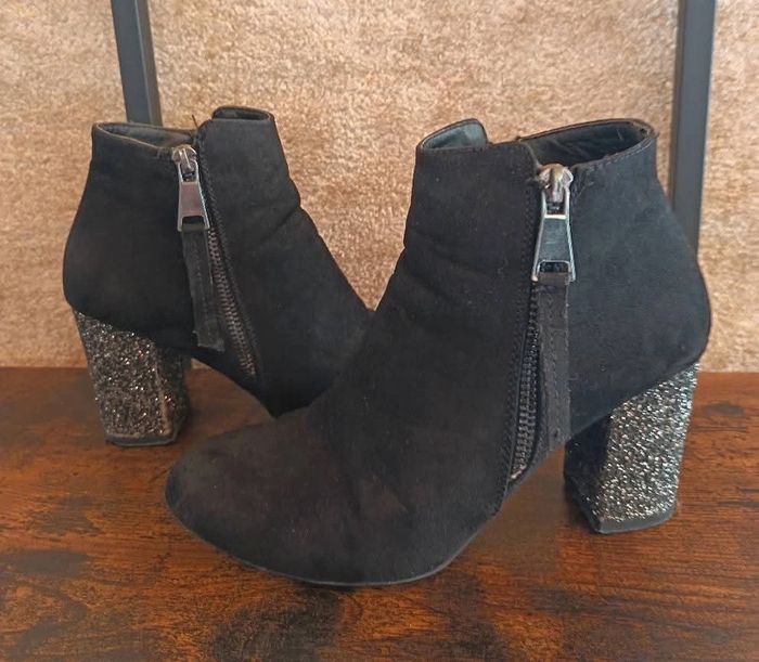 Bottines paillettes 38 Hauteur Talon : 8 cm Bon état Talon a paillettes Marque : Grand boulevard Prix : 10€ Disponible immédiatement Envoie rapide et soigné Quelque petites imperfections car ont était porter ! Remise activé sur l'achat d'un lots ❤️