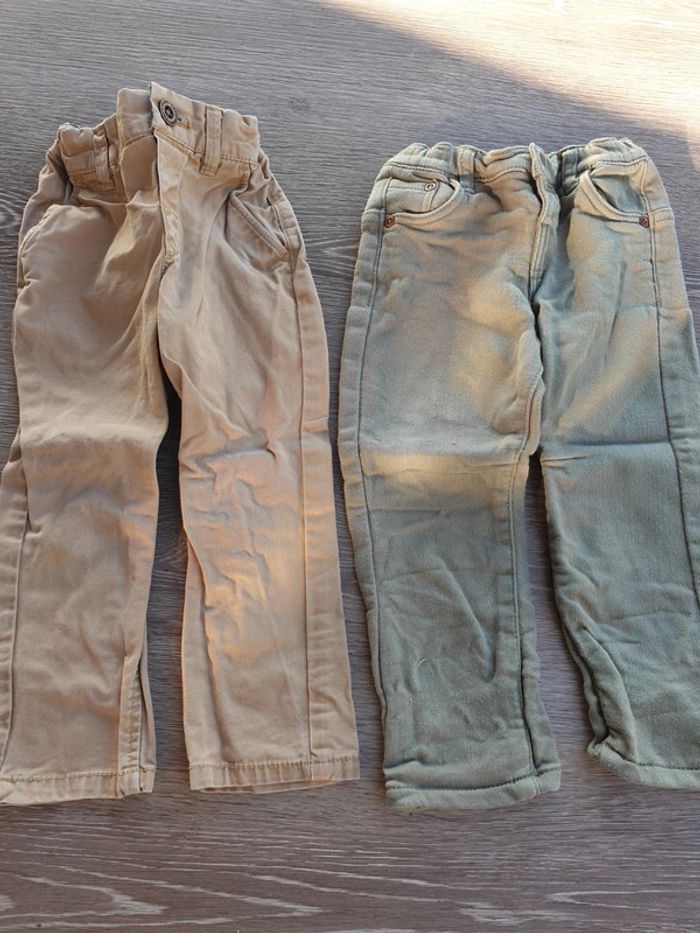 Lot de 2 pantalons garçon kaki et beige taille 18 mois - photo numéro 1