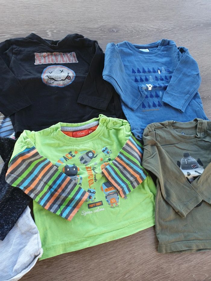 Lot de 8 t-shirts fins à manches longues garçon taille 18 mois Très bon état Tissaia, Obaïbi, Tape à l'œil, Nirvana, Sergent major