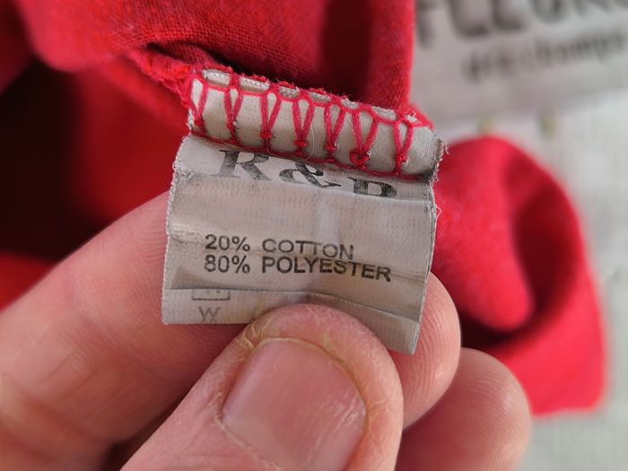Tee-shirt manches courtes 20% coton 80% polyester Comporte une tâche voir photo 5 elle devrait partir sans difficulté