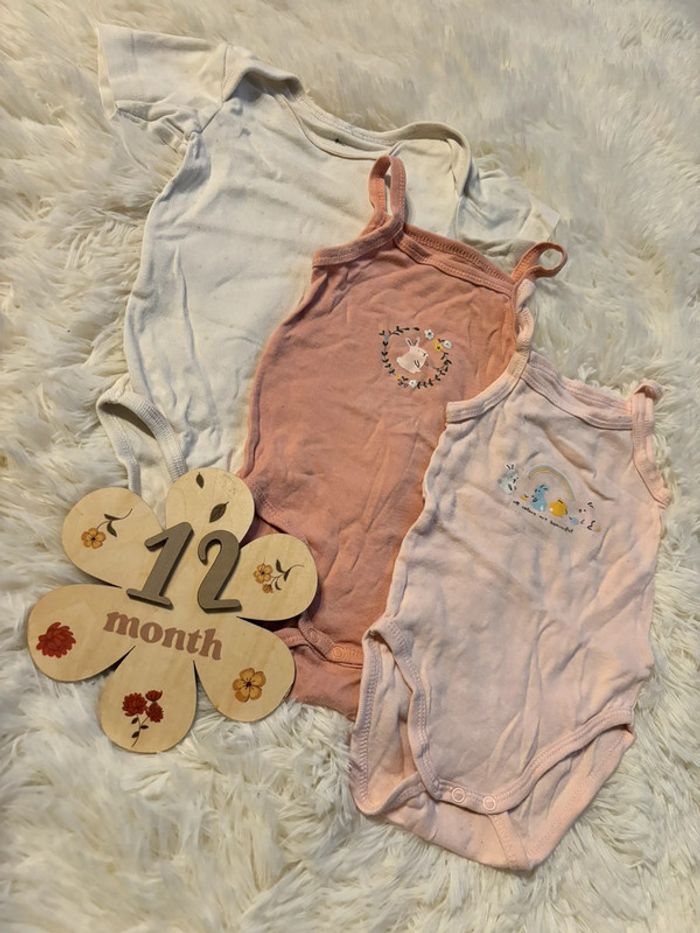 Lot 3 bodies 12 mois Porté plusieurs fois #maevamaylanjulya12moisfille