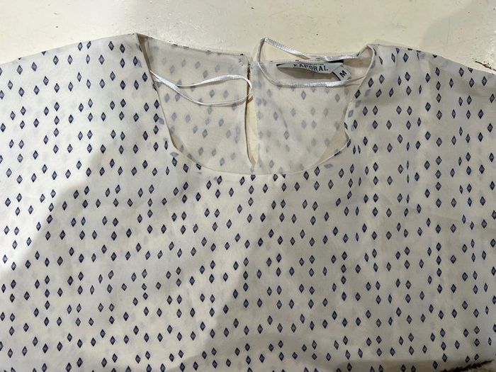 Je vends une Robe Manches courtes Pour l’été De la marque Kaporal, taille M Il y a une petite plaque de métal en forme de K pour Kaporal en bas à gauche de la robe voir photo Elle est doublée car transparente Les mesures sont données sur photo L’étiquette de composition a été coupée. La robe est comme neuve. Je pense qu’elle a été portée une fois ou pas du tout… Oran21