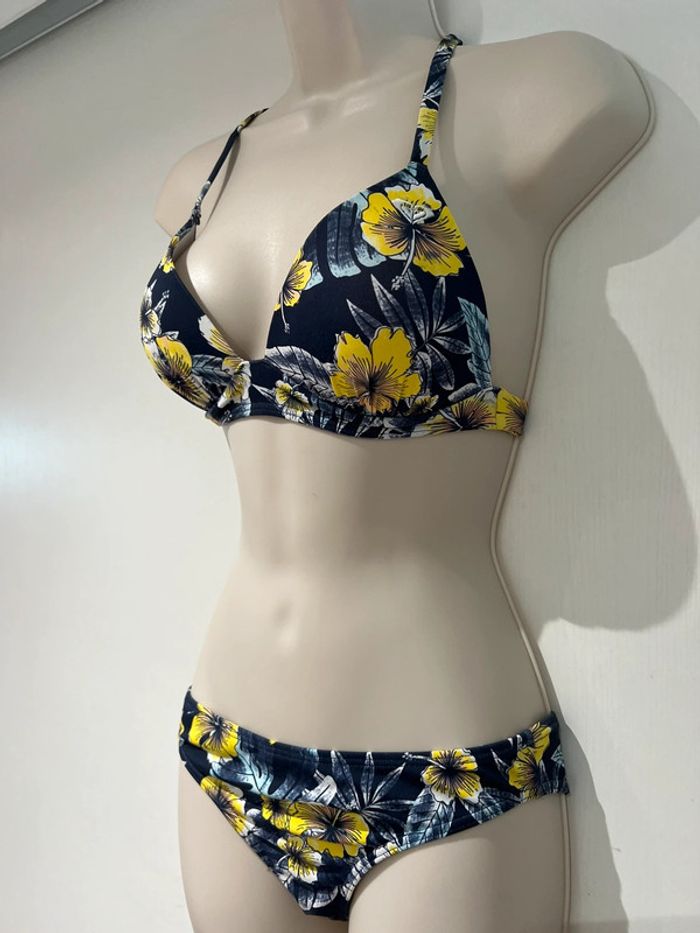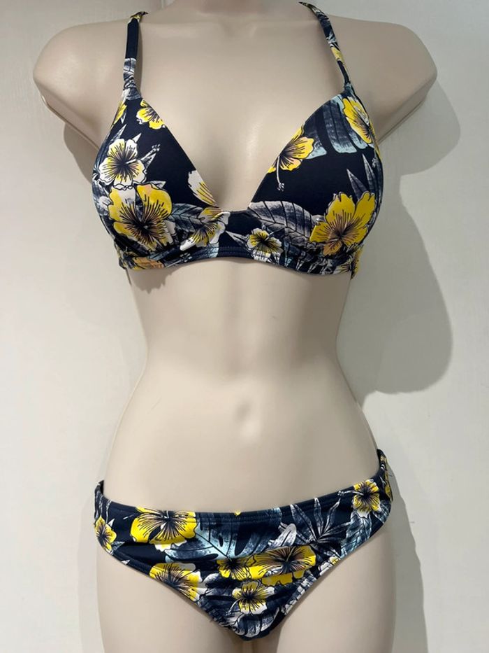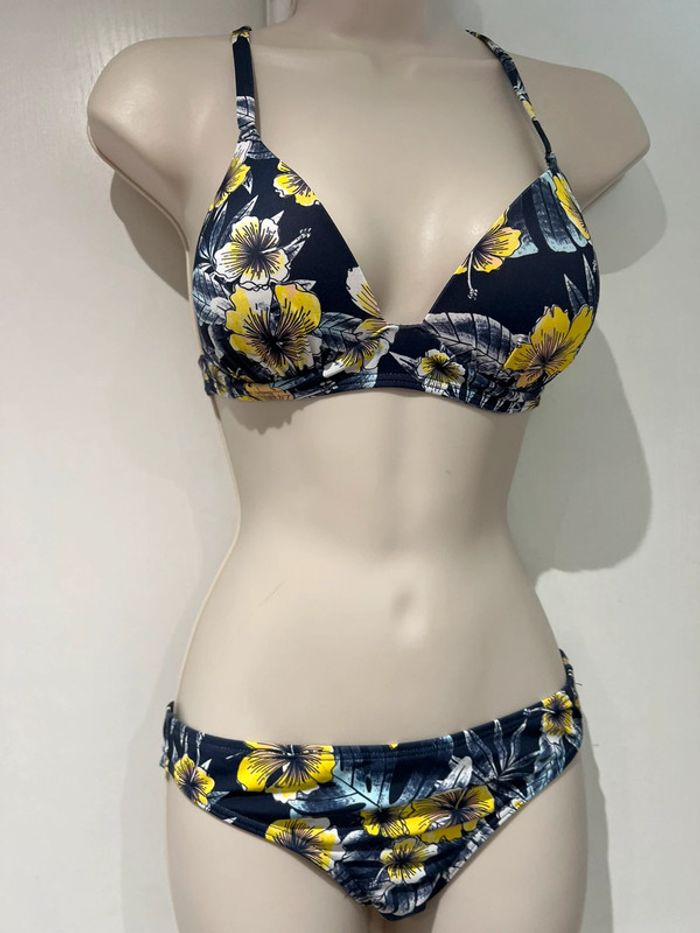 Maillot de bain, deux pièces Roxy bleu jaune, taille 10/38/M - photo numéro 2