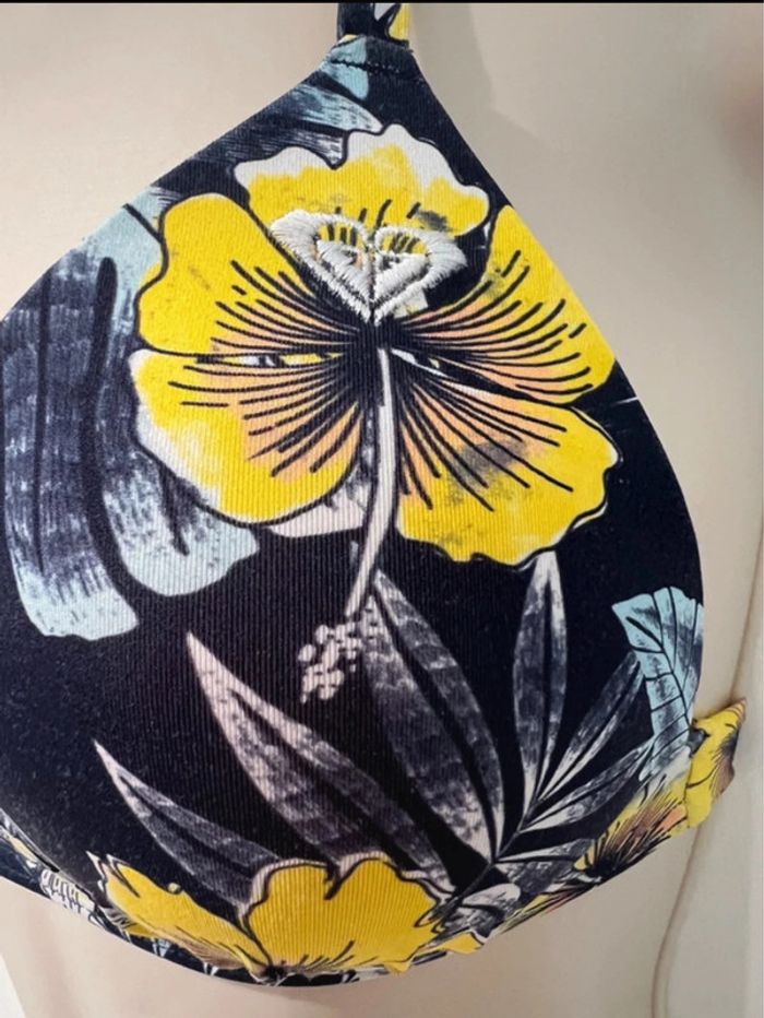 Maillot de bain, deux pièces Roxy bleu jaune, taille 10/38/M - photo numéro 5