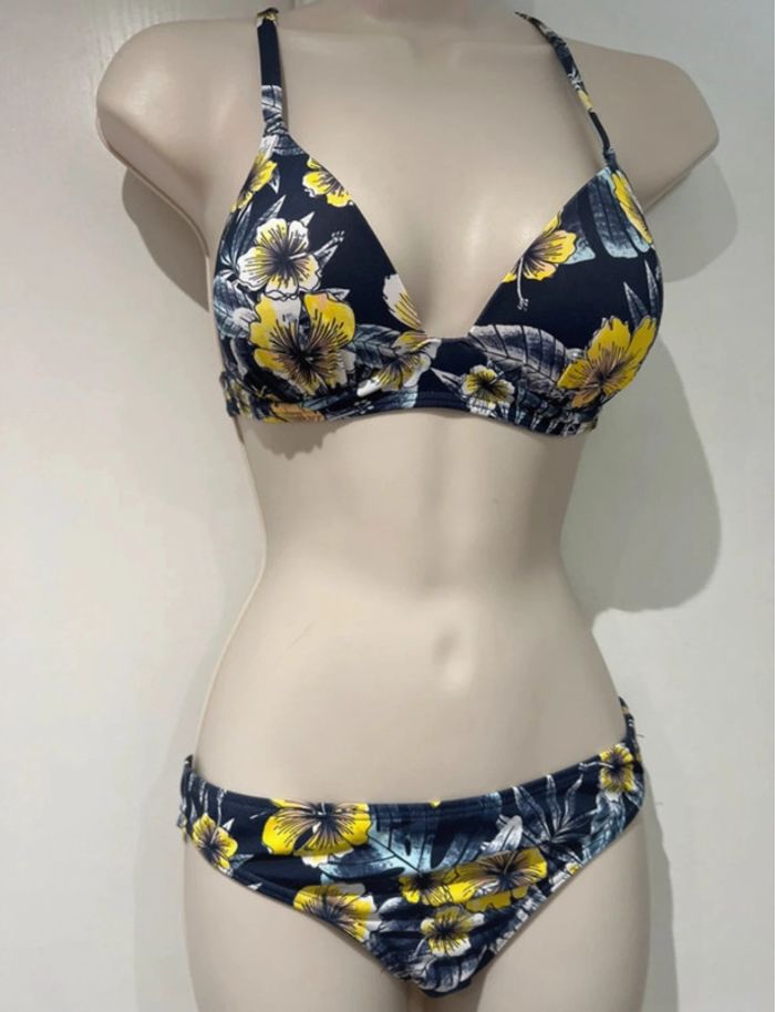 Maillot de bain, deux pièces Roxy bleu jaune, taille 10/38/M - photo numéro 1