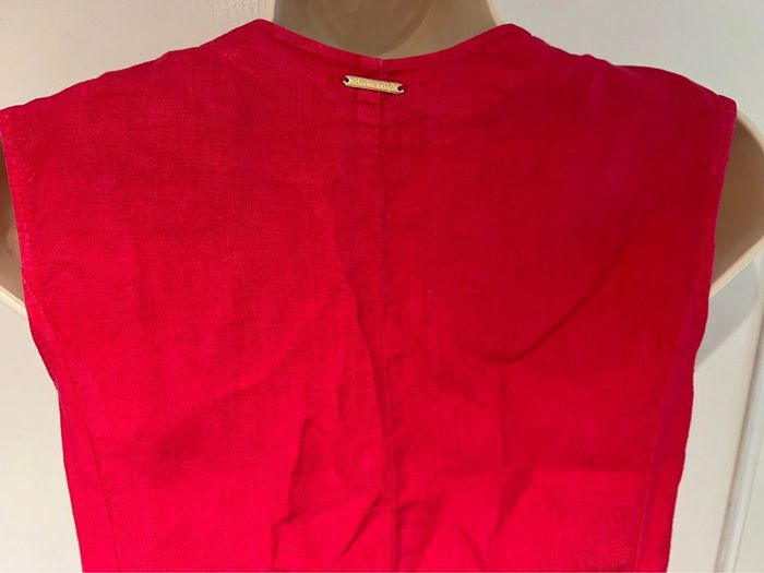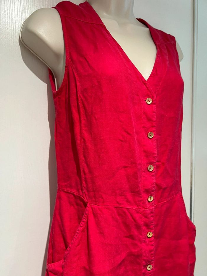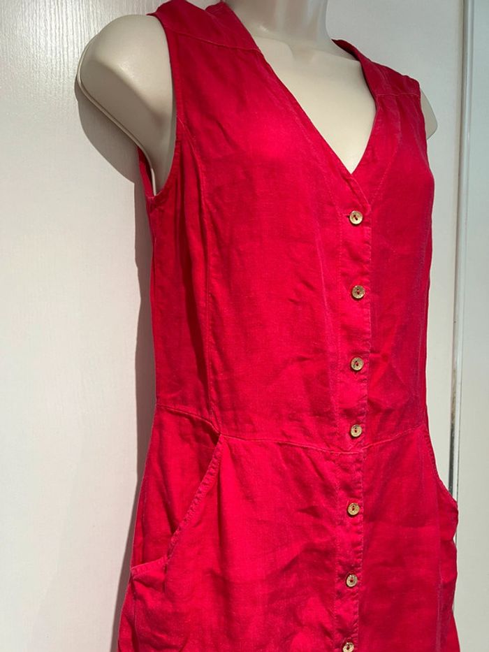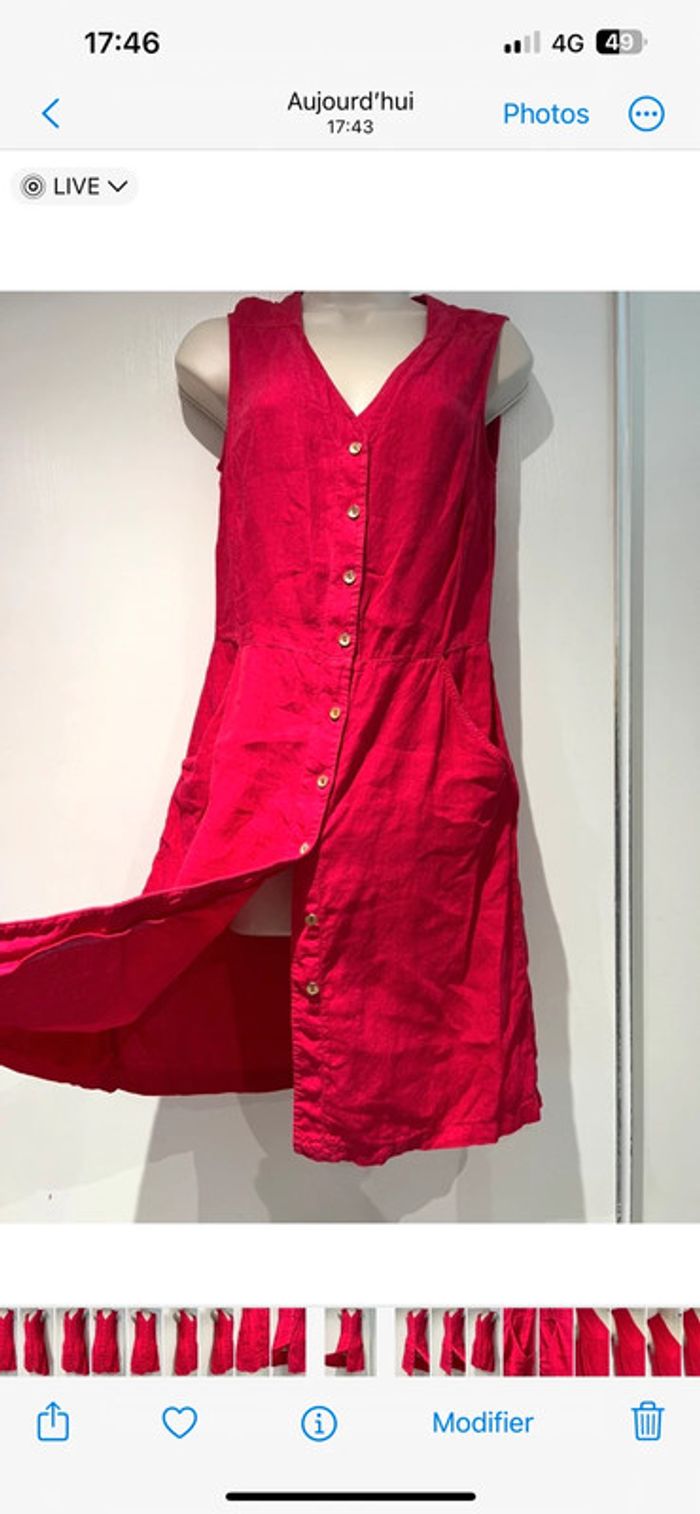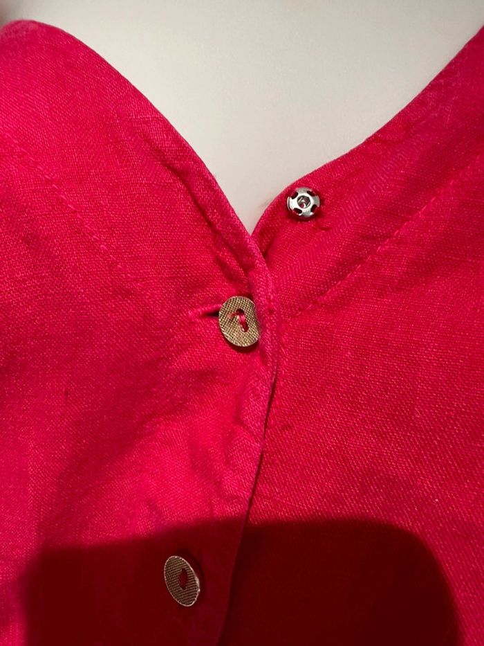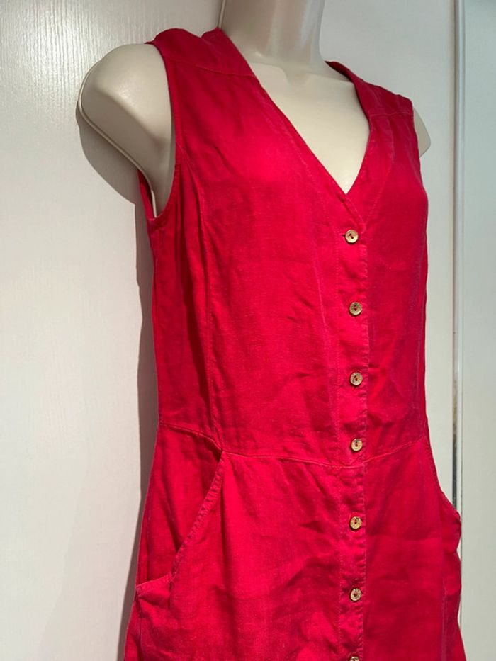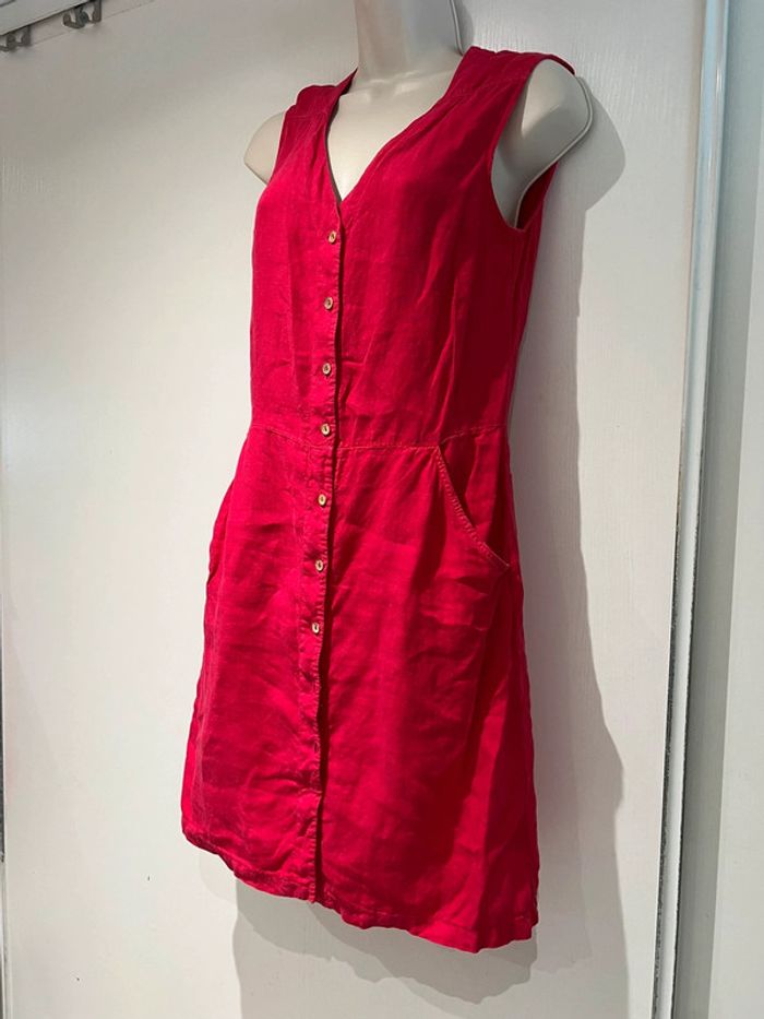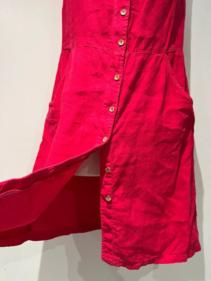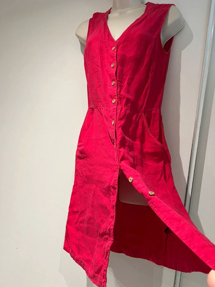 Je vends une robe Couleur un peu framboise. La couleur est plutôt bien représentée sur photo. De la marque en step Elle est en parfait état. Elle est en 100 % l’un L’étiquette de composition a été coupée Les mesures sont données sur photo D’autres renseignements photos sur Demande Pas de photos portées Elle possède deux poches et une longue série de boutons, Un petit bouton pression au décolleté Lavable basse, température Robe Master of line, 100 % made in Europe 0ran25