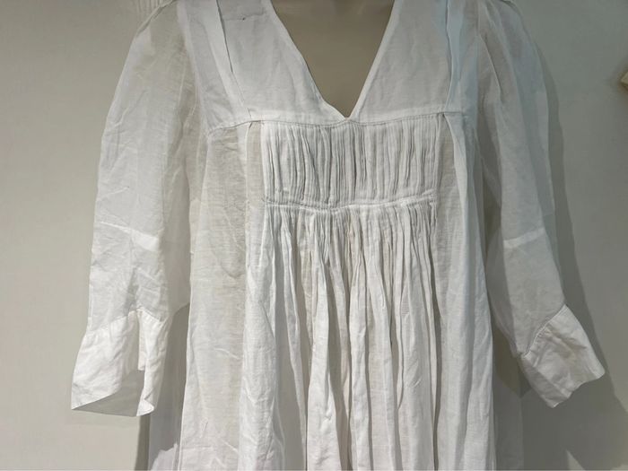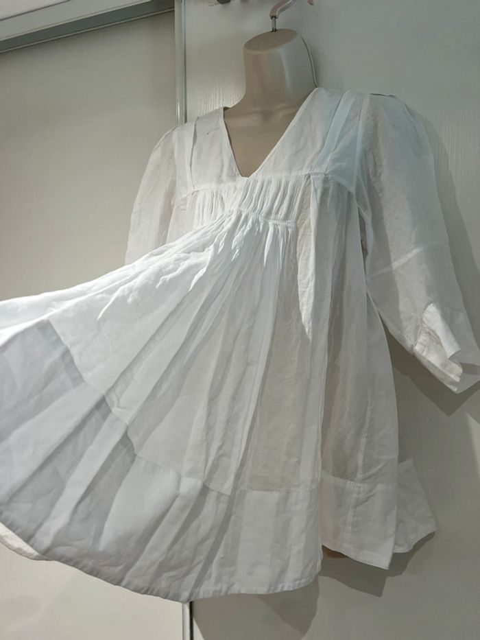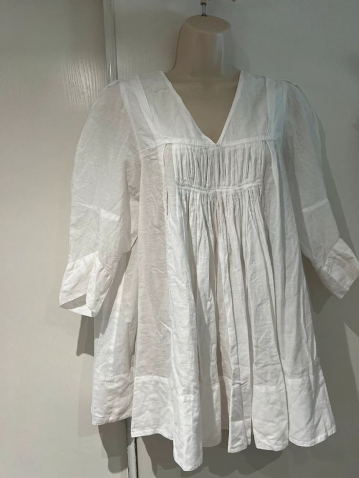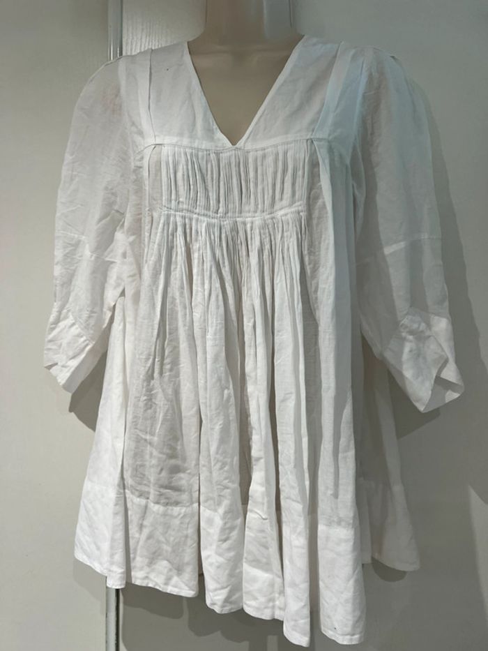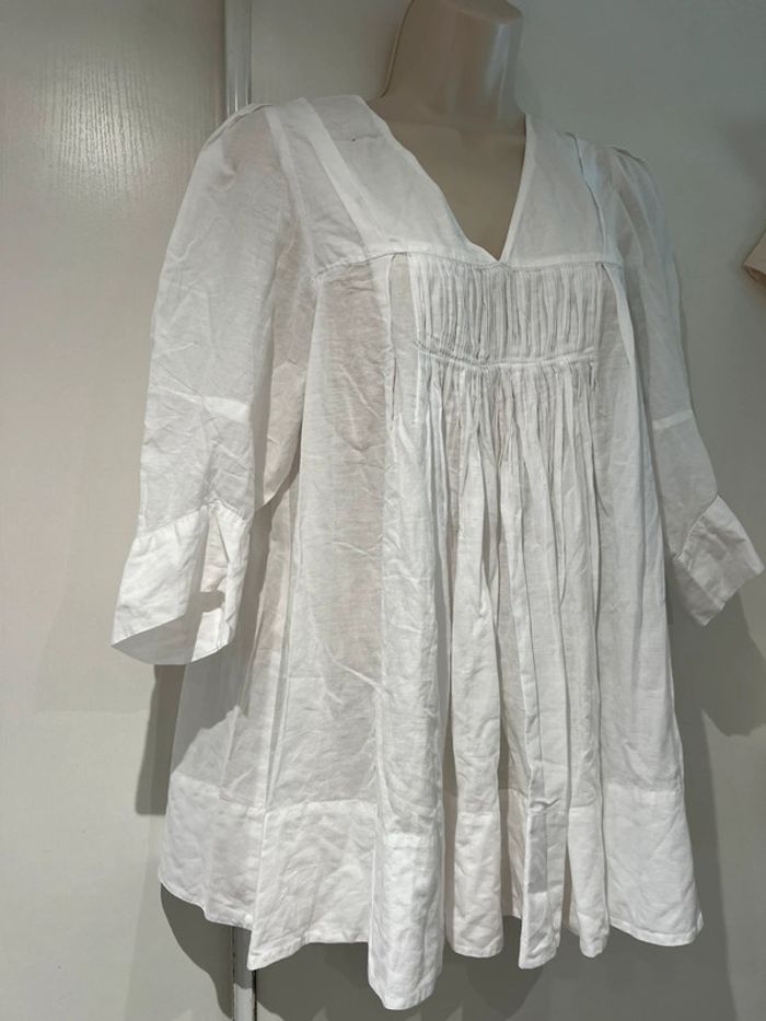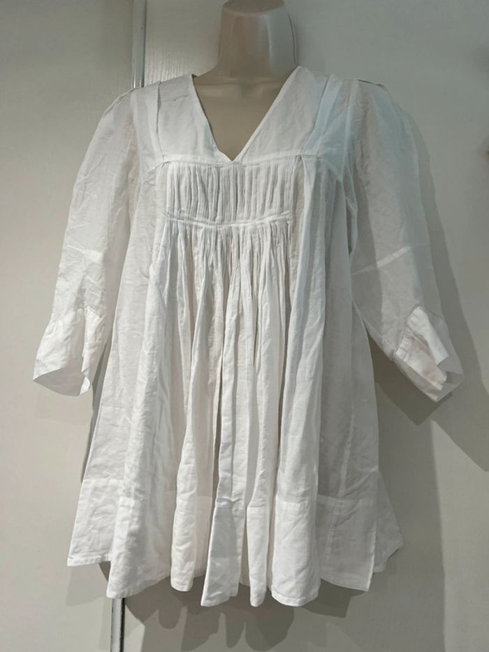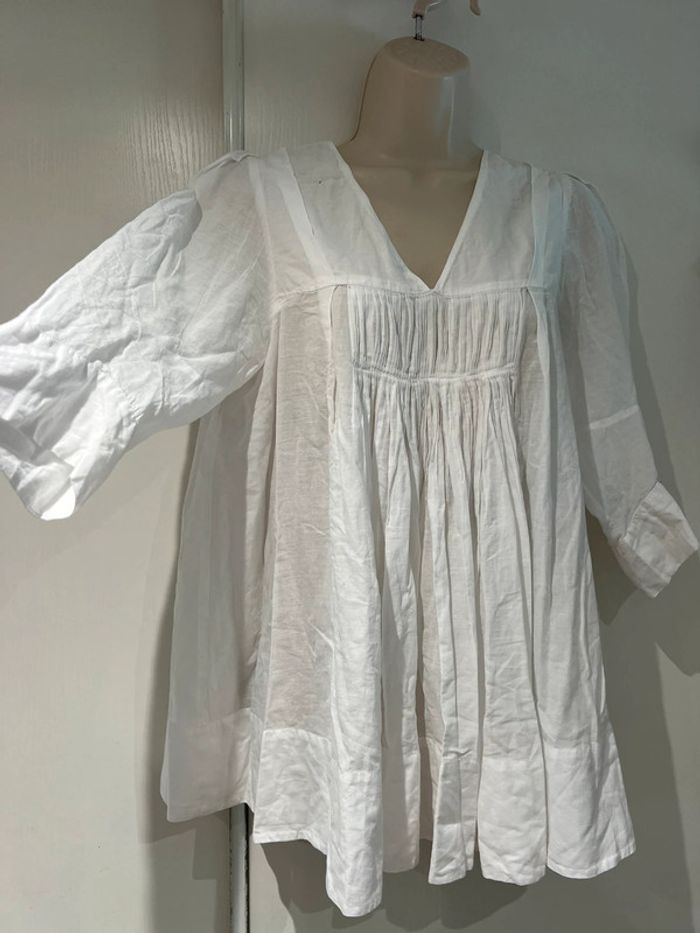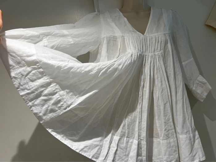Je vends une petite blouse blanche, légèrement transparente Elle est neuve Elle est très large Les manches sont travaillées Les épaules vont dans les manches Les manches ont une très jolie forme 100 % coton Les mesures sont données sur photo D’autres renseignements sur Demande Chou200 oran25