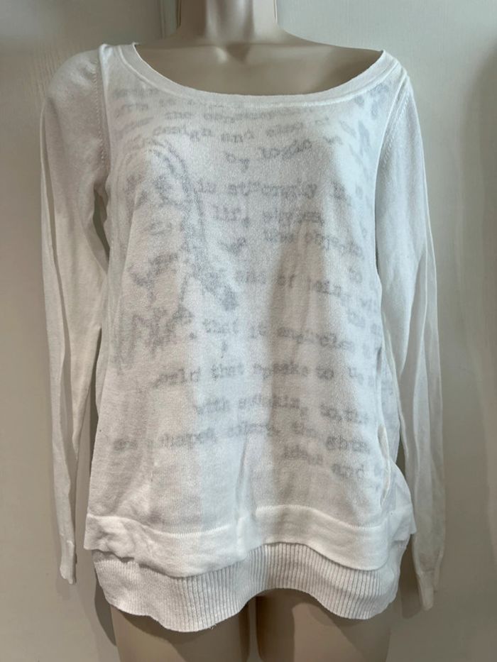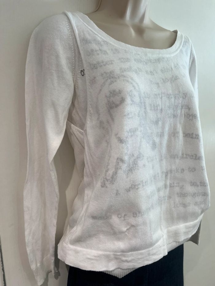 Je vends un pull Il est neuf donc à parfait état Je me doute bien, le pull est doublé sur la partie devant Les mesures sont données sur photo. Il en 100 % coton D’autres renseignements photos sur Demande, Le pull est léger il sera très agréable pour le printemps été automne Largeur sous les aisselles, 45 cm, largeur d’une épaule à l’autre 36 cm, Les épaules sont dans les manches Longueur d’une manche 62 cm. Ce petit pull est atypique avec sa partie doublée sur et son grand décolleté profondeur 11 cm sur le milieu devant du décolleté. Longueur milieu de l’épaule jusqu’en bas 62 cm, largeur bas de Pull. 51 cm. Longueur sous les aisselles jusqu’en bas de Pull, 45 cm Oran14