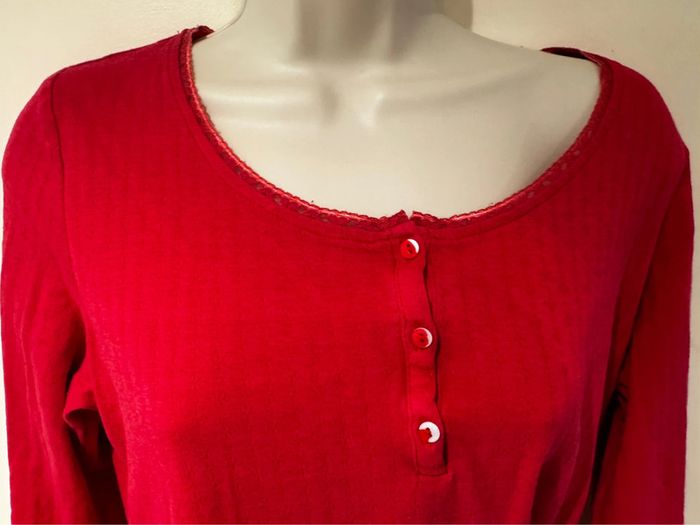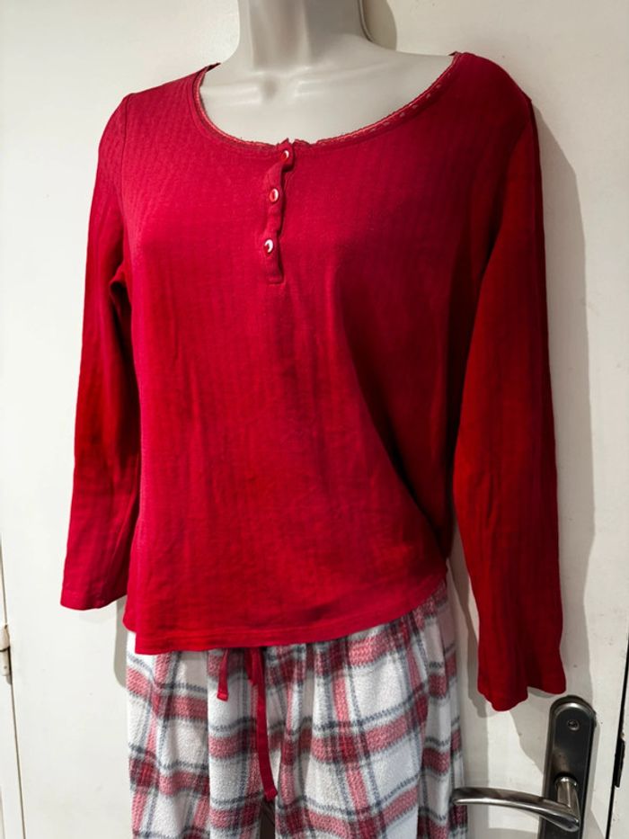 Je vends un pyjama Pyjama, rouge-gorge, taille M/38 De la marque rouge-gorge Il est en bon état J’ai mis bon état car les boutons ont perdu de la couleur rouge, ils sont jolis tout de même cela donne un petit côté nacré . Il n’y a pas de trace d’usure ou l’usage. Le pantalon est en 100 % polyester, il est très chaud et très doux comme la matière pilou . Le haut de Pyjama est à 100 % coton. Le pantalon de pyjama possède un petit cordon pour resserrer la ceinture. La ceinture est composée d’un élastique qui fait quasiment le tour de la taille. Il s’arrête sur les deux côtés du nombril à environ 10 cm dedroite et gauche. Les mesures sont données sur photo D’autres renseignements sur Demande Pas de photos portées Oran27