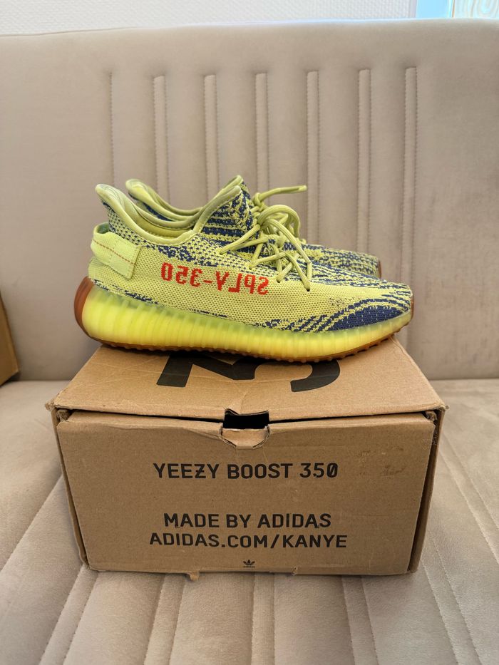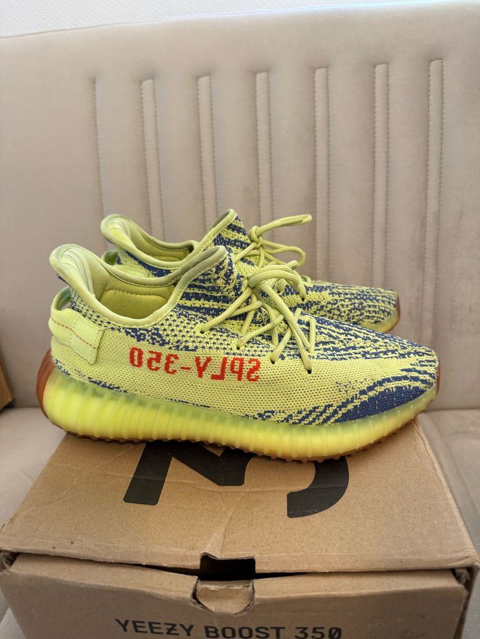 👟 Adidas Yeezy Boost 350 V2 – Pointure 41 1/3 Baskets Yeezy Boost 350 V2 by Adidas 🧵 Baskets basses en toile 📏 Pointure : 41 1/3 🎨 Coloris : “Semi Frozen Yellow” 📦 Vendues avec la boîte d’origine ✅ Portées quelques fois uniquement ✅ En très bon état ✅ Semelles encore en très bon état, 🔥 Modèle emblématique, confortable et stylé.