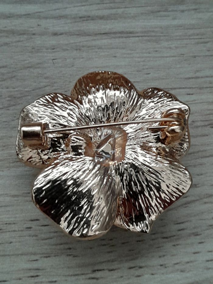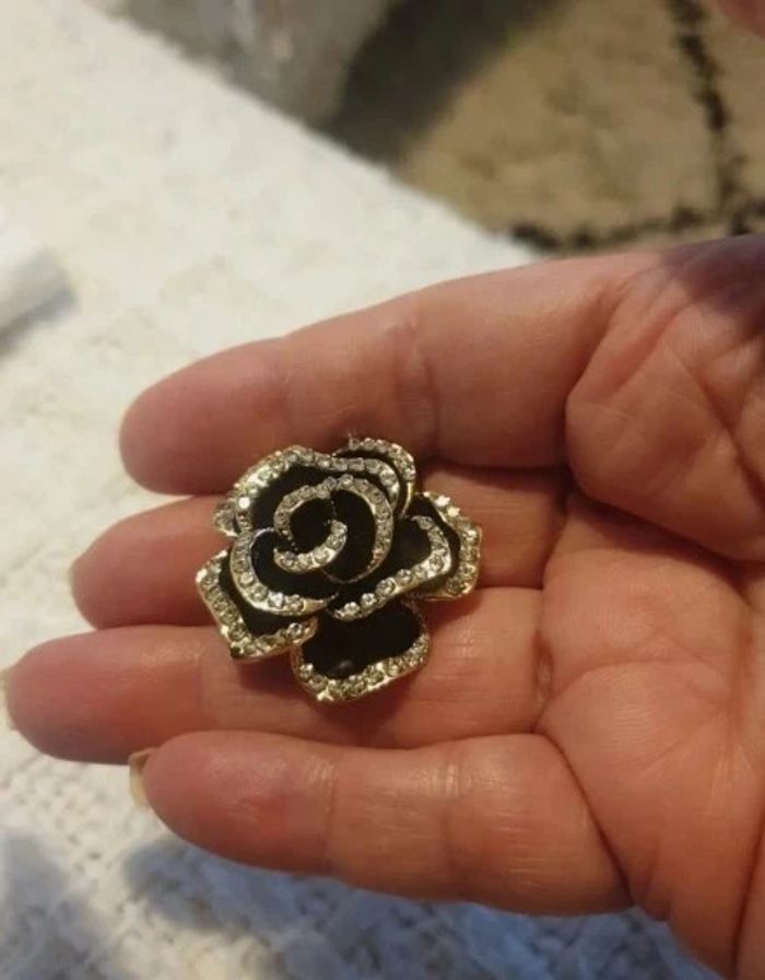 Broche fleur de Camélia couleur noire et dorée, strass - photo numéro 4