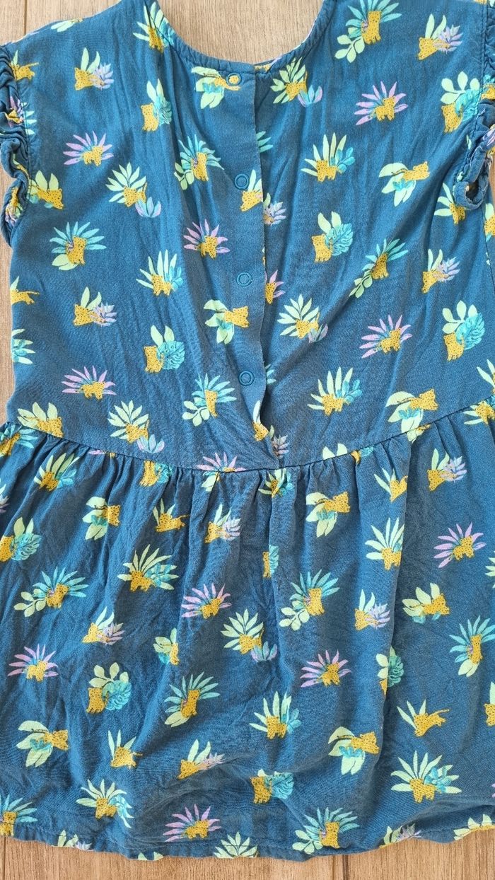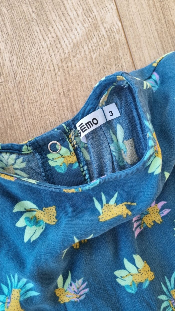 Robe 👗 sans manches avec volants été ☀️ 📍 Légère 🎨 Bleu / vert avec motif panthère 📍 Pression dans le 📍 Col rond 📏 3 ans #harmonie1017fille3ans
