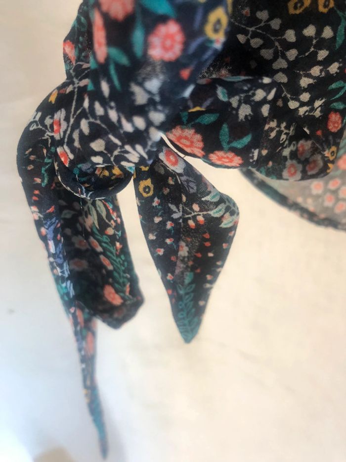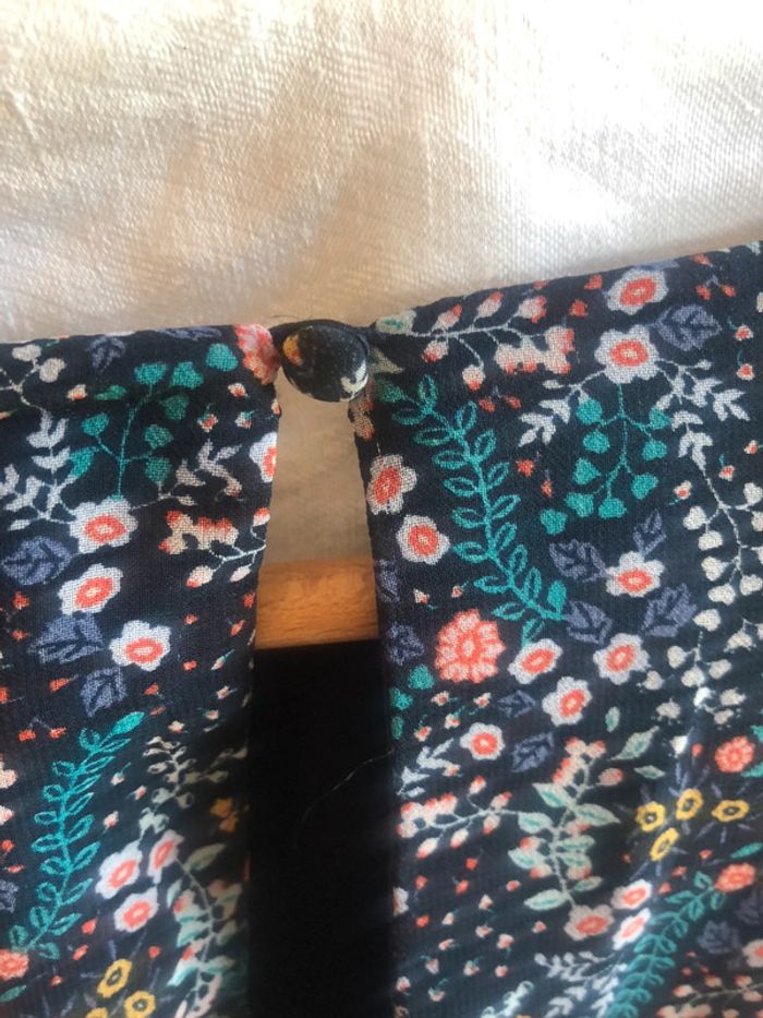 #blousemancheslongues #mama #grossesse mais peut être utilisée autrement Doublée sur le corps Boutonnage derrière cou 1 bouton de rechange Manches longues transparentes normales puis bouffantes Largeur aisselle à aisselle 51 Ruban même tissu pour fermeture poignets Très joli imprimé fleuri