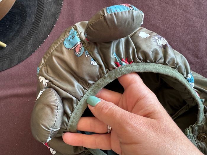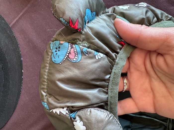 Petit défaut de fabrication au niveau de la couture sur la capuche (il y a une double couture)
