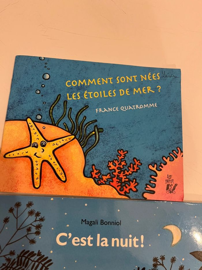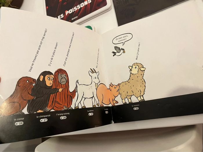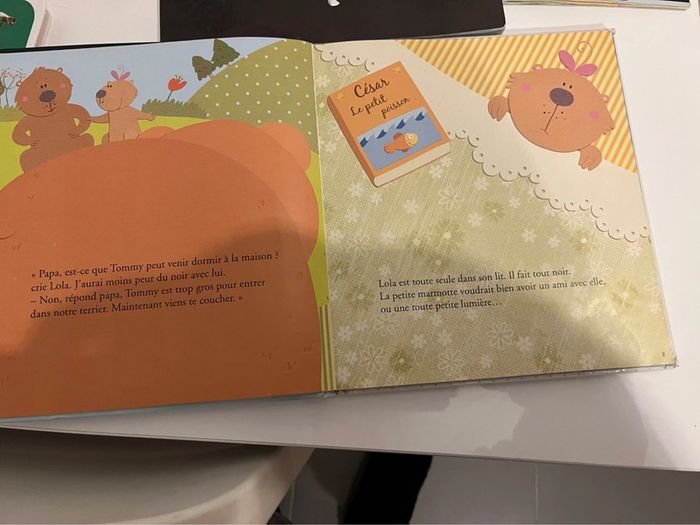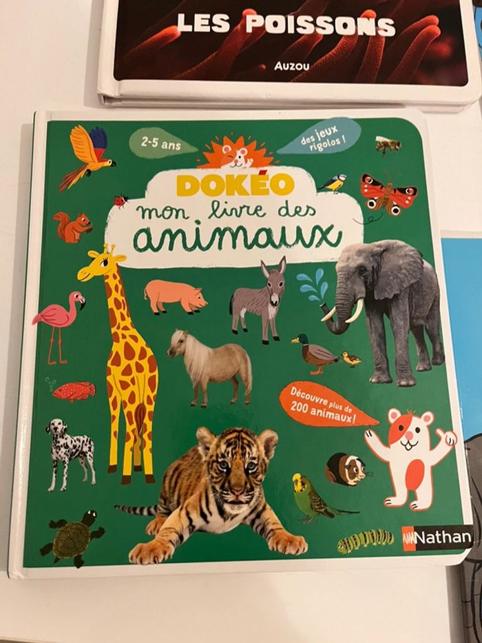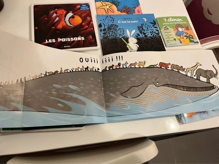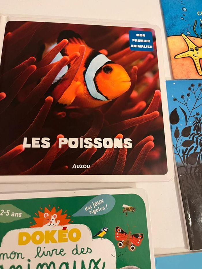 1 sur les poissons 1 tchoupi… Tcjoupi est un peu rescotché car les pages se détachent Et celui des animaux dokeo a une seule page réparée Sinon ils sont en très bon état