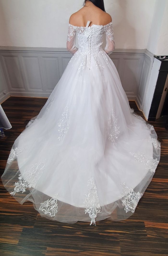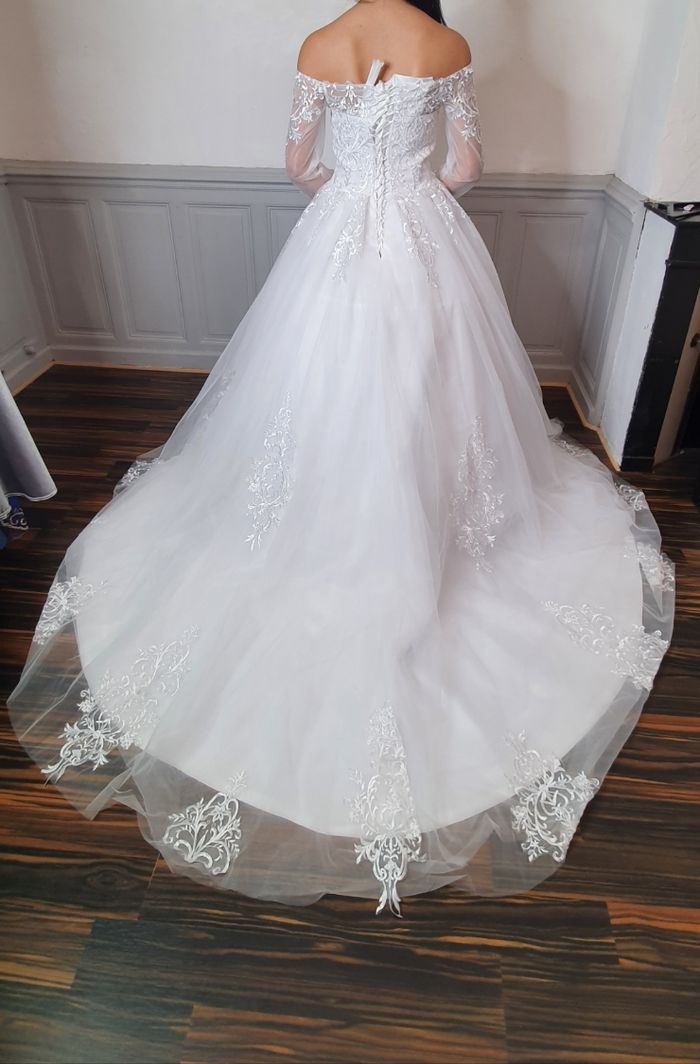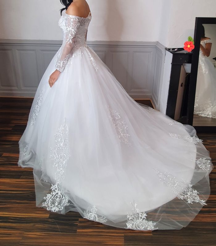 robe de mariee princesse avec traine manche longue dentelle col bateau taille 40/42 - photo numéro 3