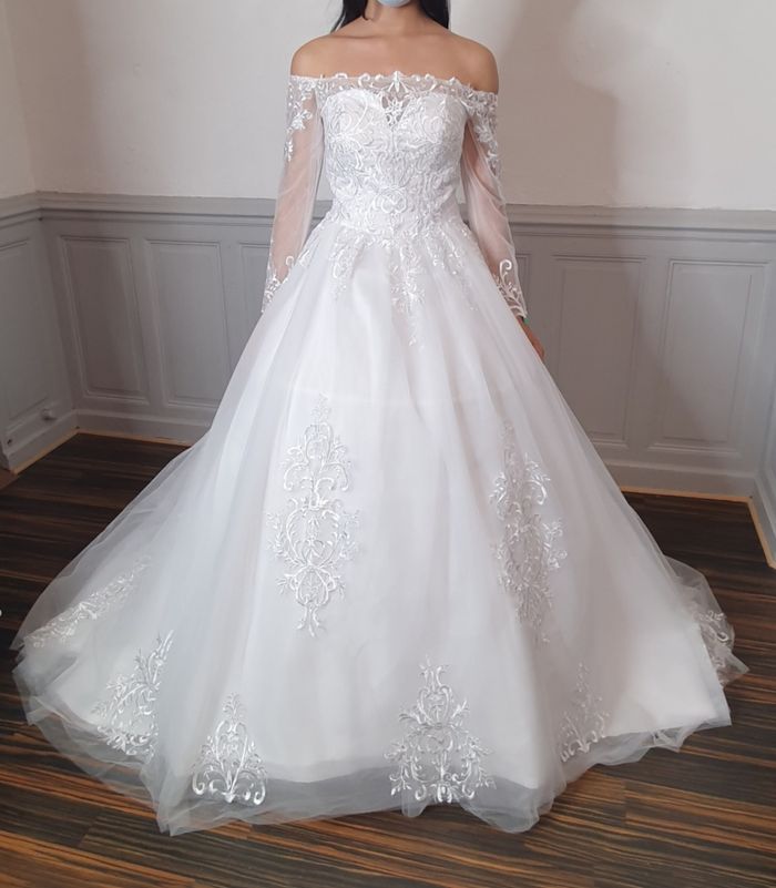 robe de mariee princesse avec traine manche longue dentelle col bateau taille 40/42 - photo numéro 1