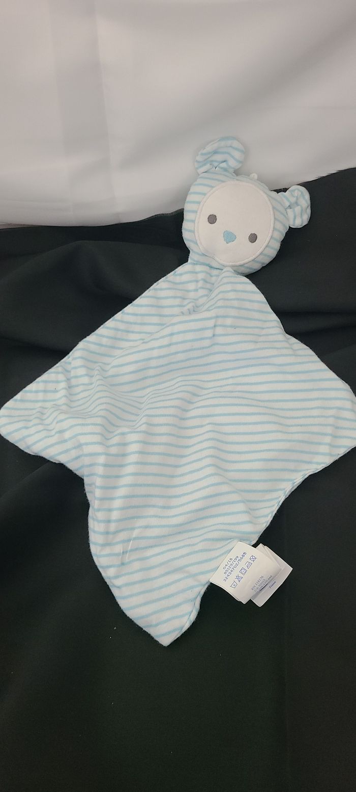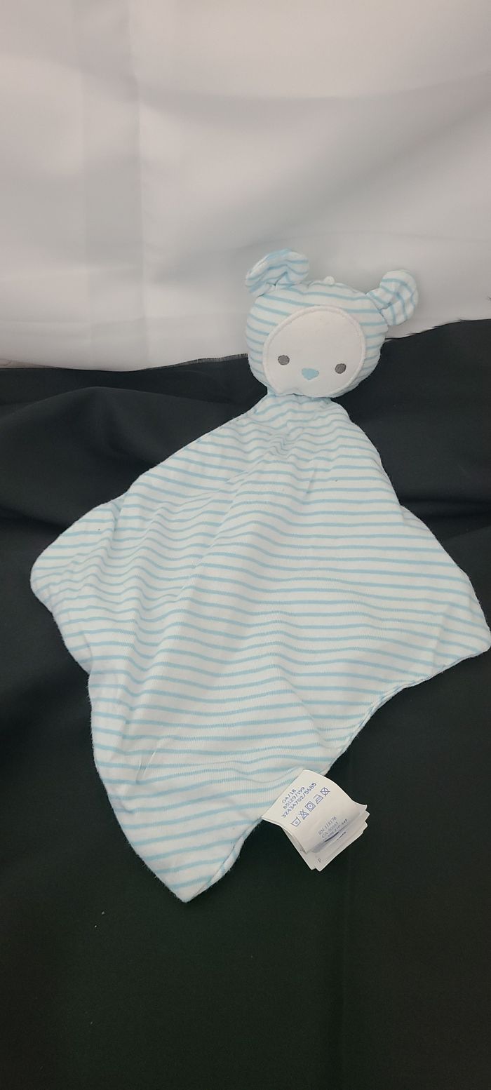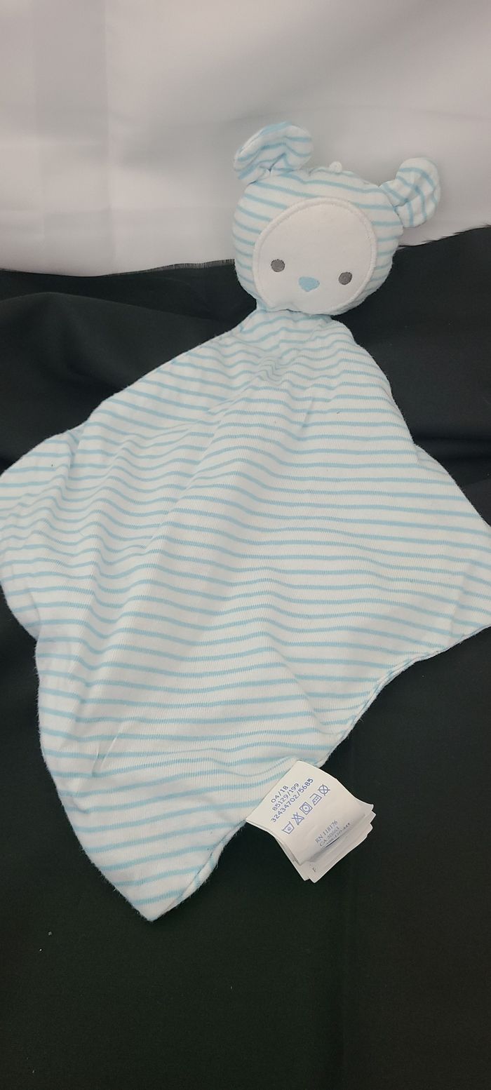 Doudou plat ours souris blanc bleu rayures Obaibi - photo numéro 1