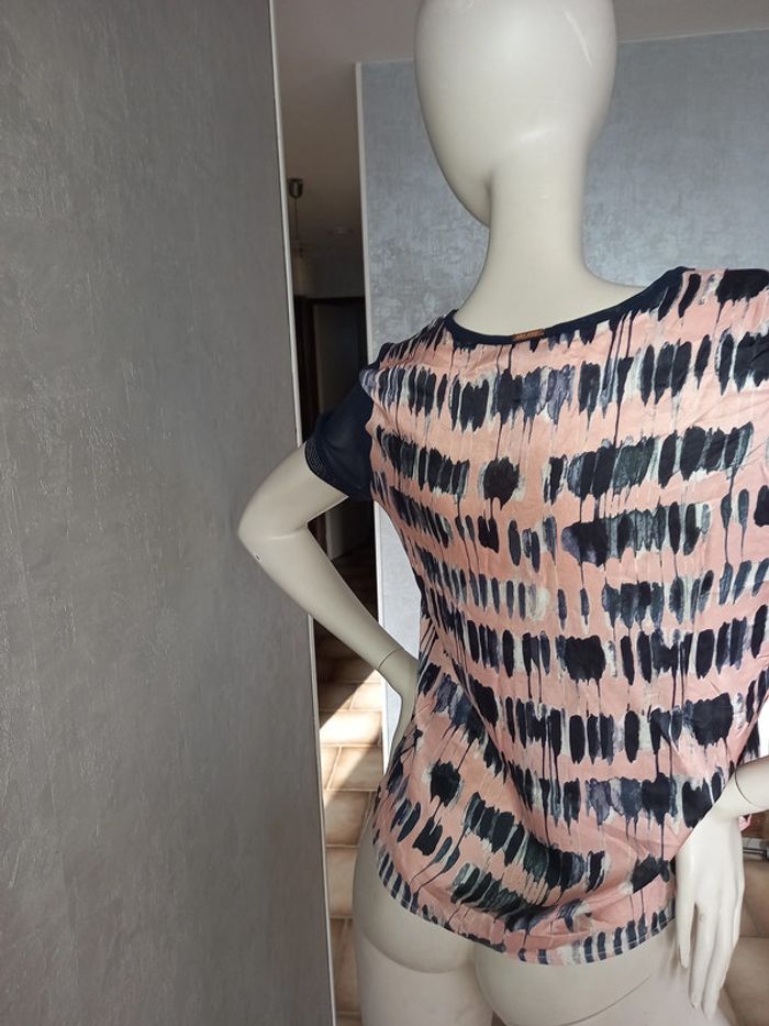 tee shirt rose et bleu marine satiné one step taille 40 - photo numéro 2