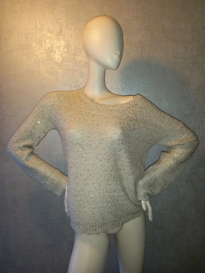 pull à maille crème et doré avec séquins doré taille 40