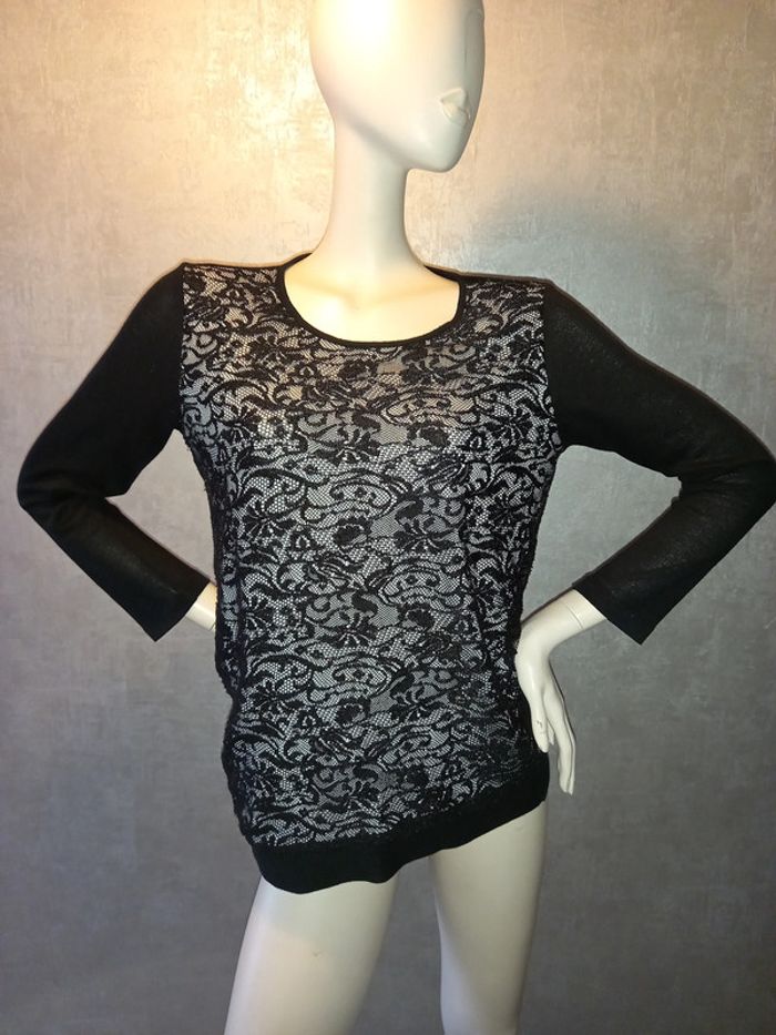 pull noir avec dentelle devant LC waikiki taille 42, largeur aisselle à aisselle 49 cm #42petitefee3