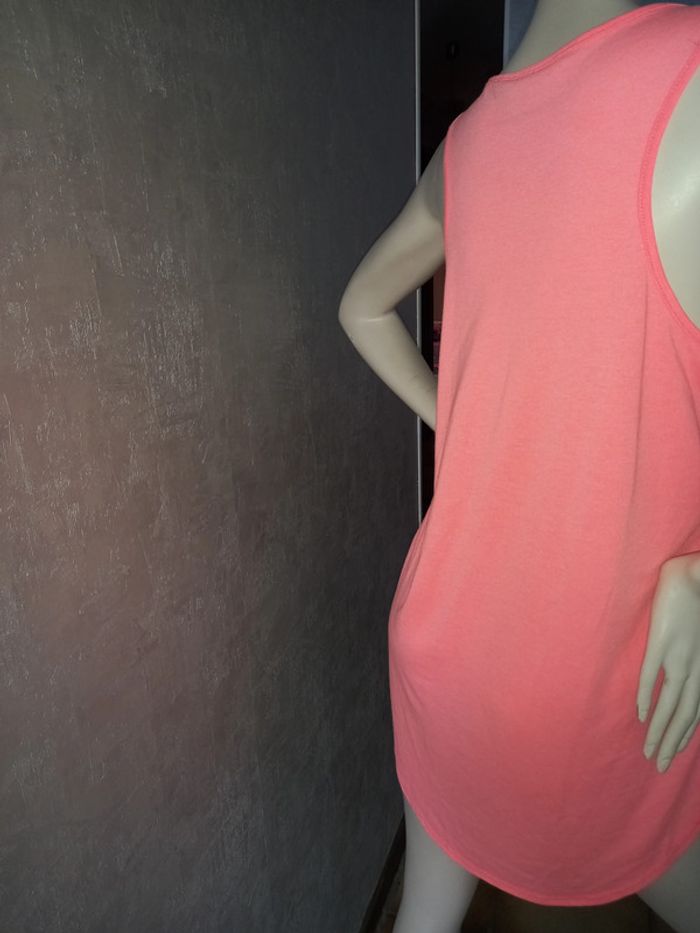 débardeur rose et coloré Kwoman kiabi, marqué taille XL et taille 42, plus long derrière que devant, largeur aisselle à aisselle 49 cm, longueur du dessous de bras à en bas 41 cm (devant) et 57 cm (derrière), matière devant 66 % polyester et 34 % viscose, et derrière 100 % viscose #42petitefee3