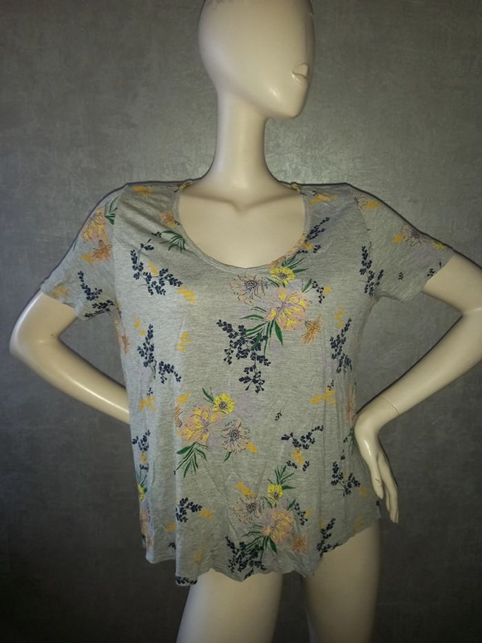 tee shirt gris à fleur taille 42 - photo numéro 1