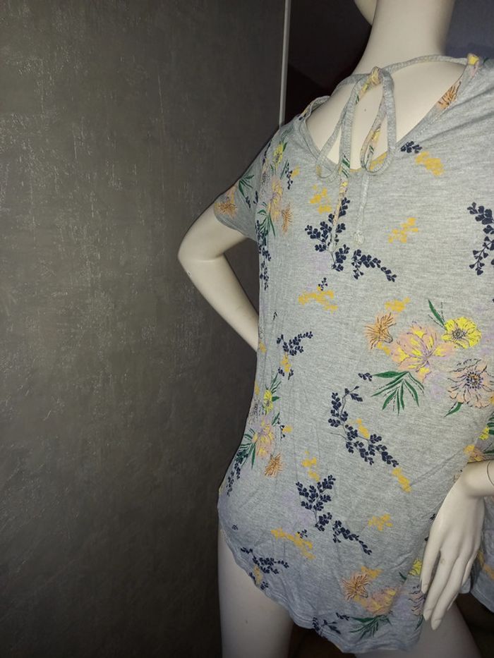 tee shirt gris à fleur taille 42 - photo numéro 2