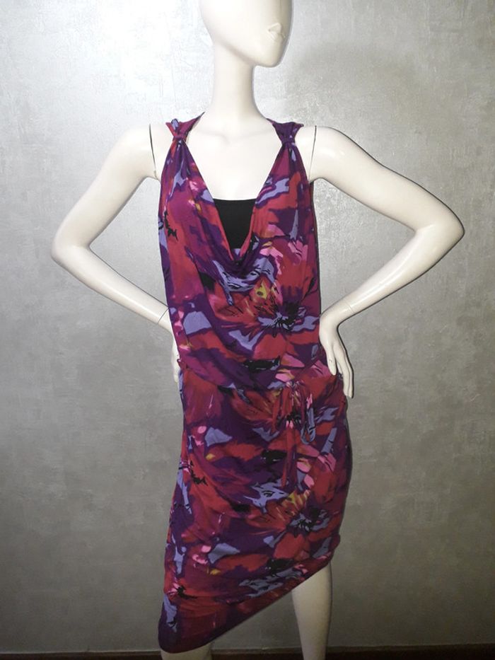 robe violette et rose M&S mode, marqué taille L mais taille 42, matière élasthane #42petitefee3