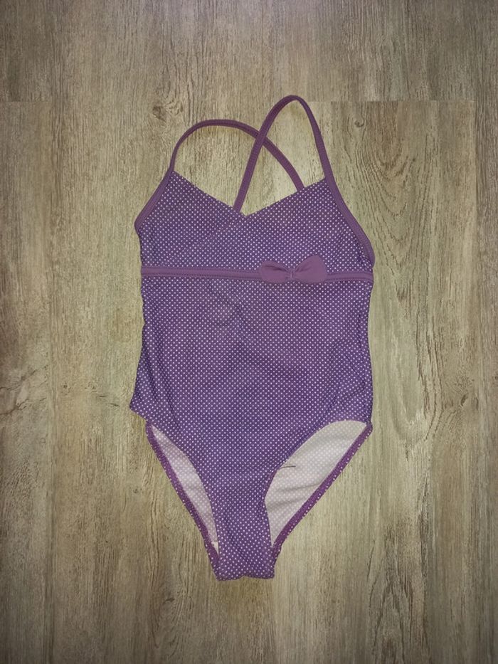 maillot de bain 1 pièce NKY taille 4 ans, violet à pois blanc croisé dans le dos #4anspetitefee3